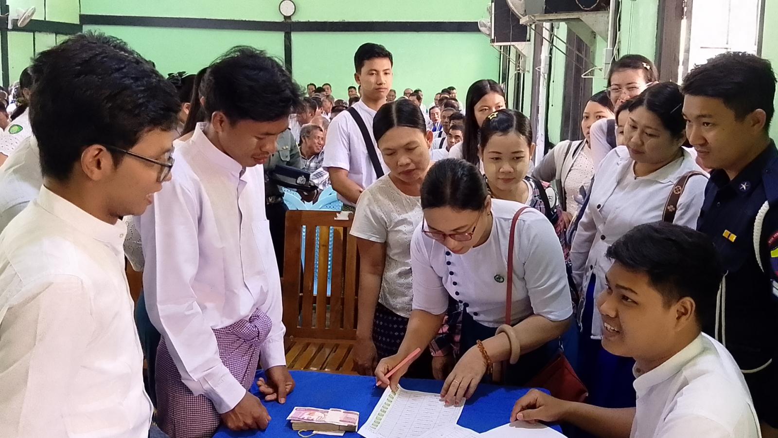 ဆက်လက်ပြီး ချီးမြှင့်ငွေပေးအပ်ပွဲကျင်းပရာ မြောင်းမြခရိုင်ရွေးကောက်ပွဲအရာရှိ၊ အိမ်မဲမြို့နယ် ရွေးကောက်ပွဲအရာရှိ ဒေါ်ခိုင်ဆွေသက်နှင့် ဝန်ထမ်းများ၊ ရပ်ကွက်/ကျေးရွာအုပ်စု ကော်မရှင်အဖွဲ့ခွဲဥက္ကဋ္ဌနှင့် အဖွဲ့ဝင် (၆၃၁)ဦးနှင့် နည်းပညာအထောက်အကူပြုအဖွဲ့ (၆၀)ဦးတို့အား စုစုပေါင်းငွေကျပ် (၁၉၅၃၀၀၀၀)အား ပေးအပ်ခဲ့သည်။