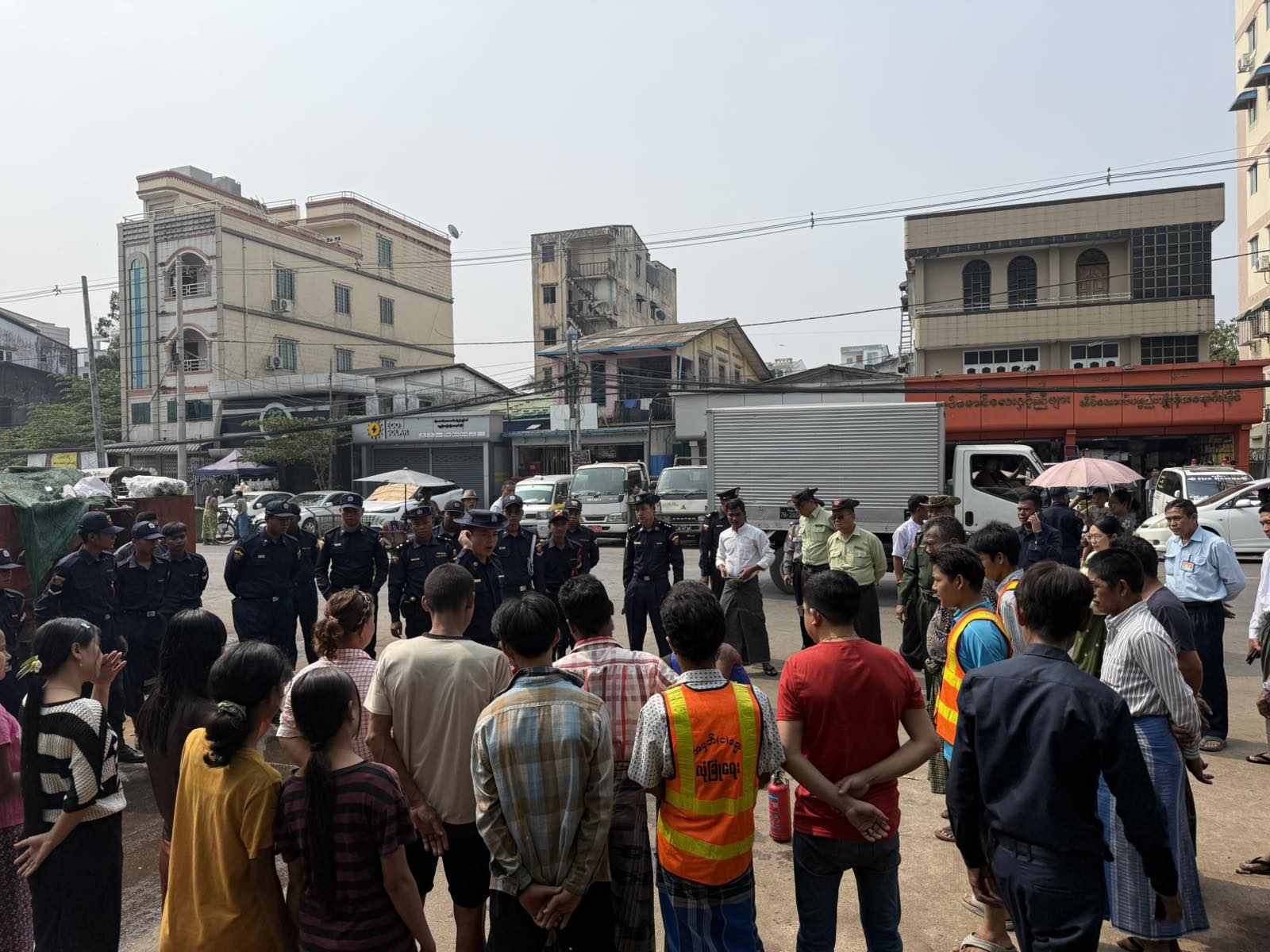 ရန်ကုန်တိုင်းဒေသကြီး၊ ဗိုလ်တထောင်ခရိုင်၊ သာကေတမြို့နယ်ရှိ အမှတ် (၁)စျေး မီးဘေးလုံခြုံရေးနှင့် ကြိုတင်ကာကွယ်ရေးအတွက် မီးဘေးလုံခြုံရေး စစ်ဆေးအသိပညာပေးခြင်းနှင့် ဇာတ်တိုက်လေ့ကျင့်ခြင်းများကို ခရိုင်စီမံခန့်ခွဲရေးနှင့်အုပ်ချုပ်ရေးကော်မတီဥက္ကဋ္ဌ ဦးဆောင်လမ်းညွှန်မှုဖြင့် ယမန်နေ့ နံနက်ပိုင်းက အဆိုပါ စျေးကြီးရှေ့တွင် ဆောင်ရွက်ခဲ့သည်။