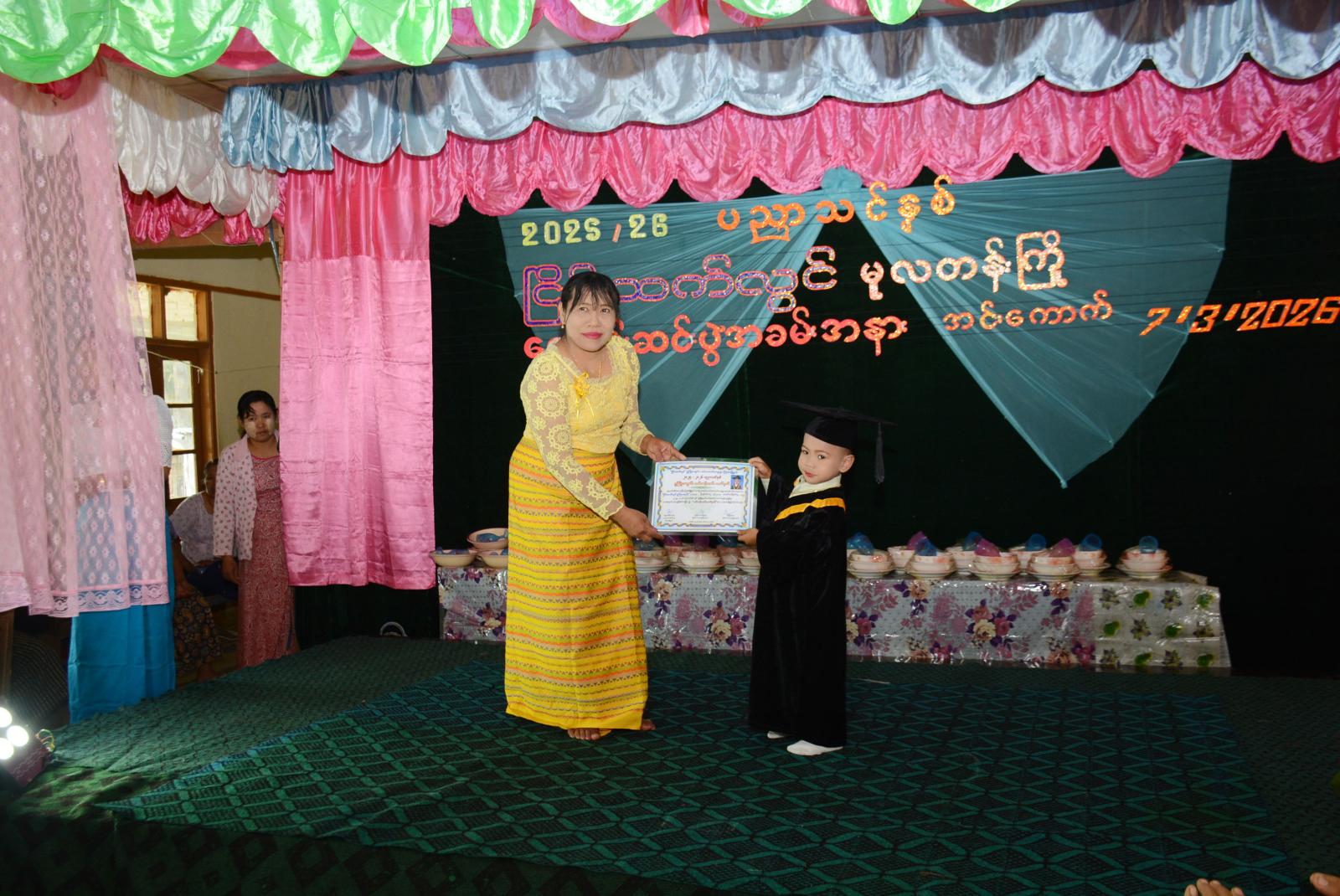 ဧရာဝတီတိုင်းဒေသကြီး၊ မြန်အောင်ခရိုင်၊ ကြံခင်းမြို့နယ်၊ ကလို့ကွင်းအုပ်စု၊ အင်းကောက်ကျေးရွာ၊ အခြေခံပညာမူတန်းကျောင်းရှိ အစည်းအဝးခန်းမ၌ ၂၀၂၅-၂၀၂၆ ခုနှစ် ပညာသင်နှစ် ငြိမ်းထက်လင်း မူလတန်းကြိုကျောင်းဆင်းလက်မှတ်ပေးအပ်ပွဲနှင့် ပဒေသာကပွဲ အခမ်းအနားကို ယနေ့နံနက်ပိုင်းက ကျင်းပပြုလုပ်ခဲ့ရာ ကြံခင်းမြို့နယ်လူမှုဝန်ထမ်းဦးစီးဌာနမှ မြို့နယ်ဦးစီးမှူးနှင့် ဝန်ထမ်းများ၊ မြို့နယ်ပြန်ကြားရေးနှင့်ပြည်သူ့ဆက်ဆံရေးဦးစီးဌာနမှ မြို့နယ်ဦးစီးမှူး၊ မြို့နယ်တိုင်းရင်းဆေးပညာဦးစီးဌာနမှ မြို့နယ်တာဝန်ခံ၊ ကျေးရွာအုပ်ချုပ်ရေးမှူး၊ ရပ်မိရပ်ဖများ၊ ဖိတ်ကြားထားသော ဧည့်ပရိတ်သတ်များ၊ ကျောင်းသား၊ကျောင်းသူများနှင့် မိဘအုပ်ထိန်းသူများ တက်ရောက်ကြသည်။