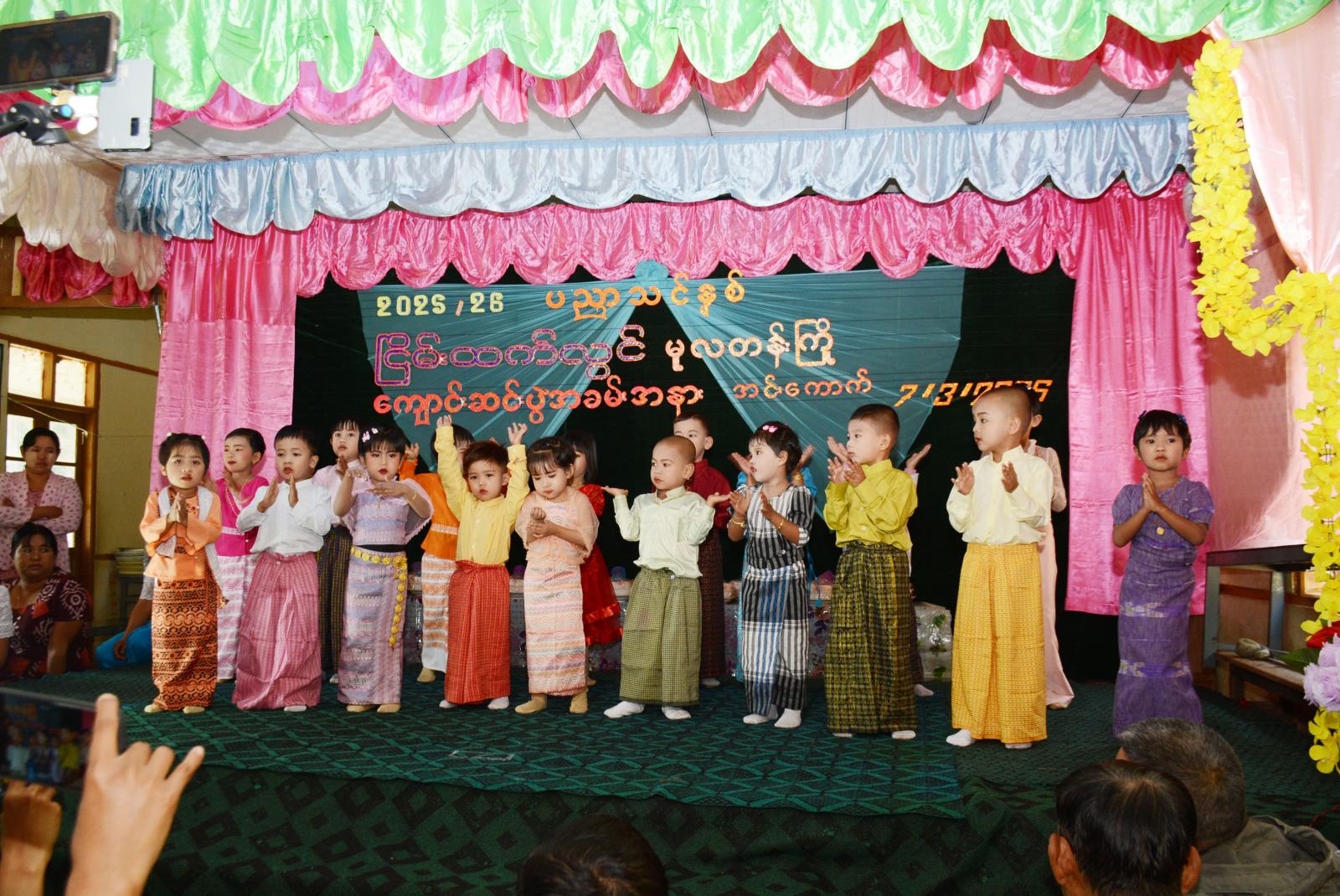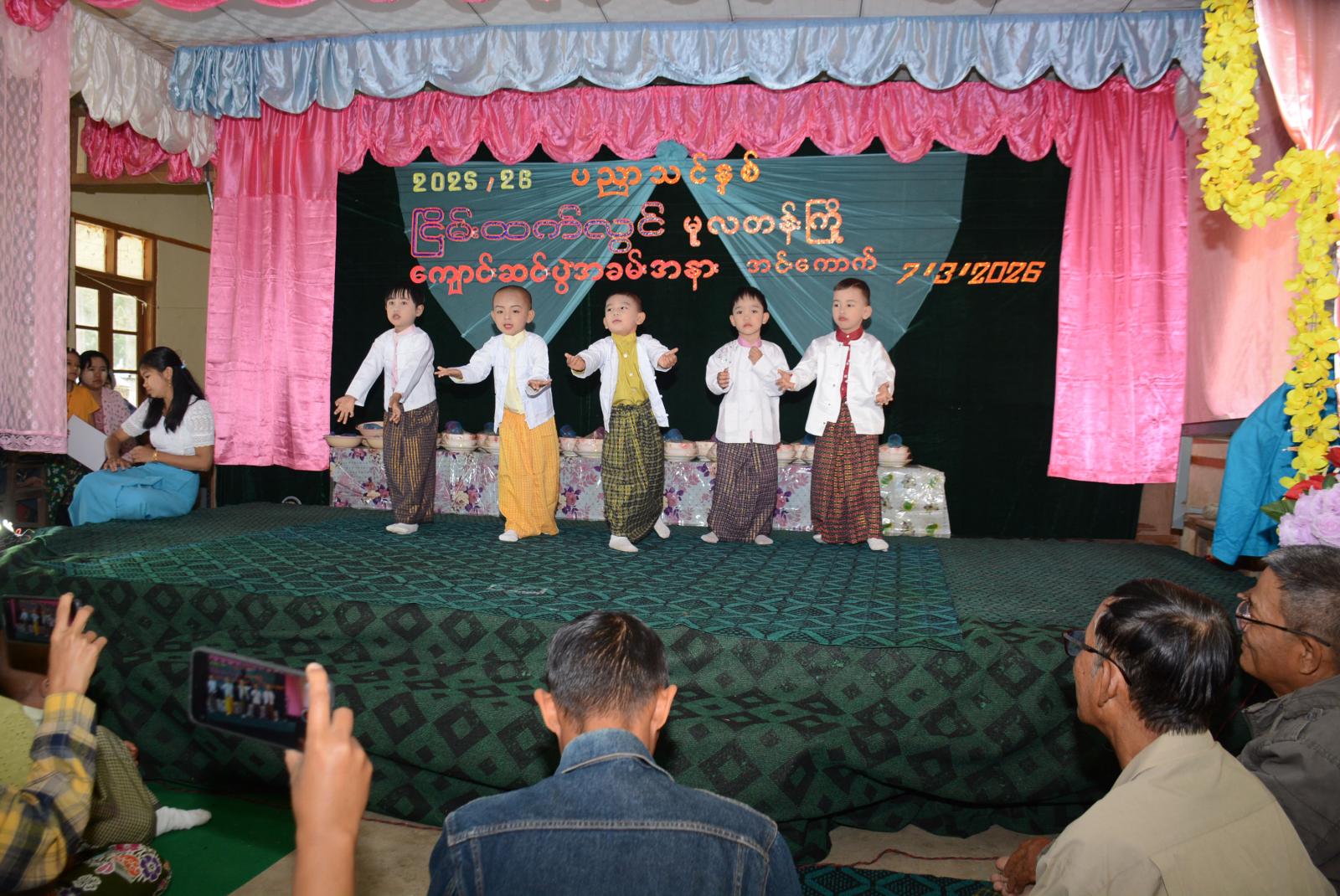 ဆက်လက်၍ Future Vision အဖွဲ့ဝင်မှ ဦးပေါ်အေးက ငြိမ်းထက်လင်း မူလတန်းကြိုကျောင်းအတွက် ထောက်ပံ့ငွေပေးအပ်ရာ ဆရာမဒေါ်လွင်လွင်မော်က လက်ခံရယူပြီး၊ မူကြိုကျောင်းသား၊ ကျောင်းသူများက ဖျော်ဖြေရေးအစီစအစဉ် ၁၁ ခုဖြင့် အသီးသီး ကပြသီဆို၍ ဖျော်ဖြေခဲ့ကြရာ ဌာနဆိုင်ရာများနှင့် ဖိတ်ကြားထားသော ဧည့်ပရိတ်သတ်များက အားပေးခဲ့ကြကြောင်း သိရသည်။
