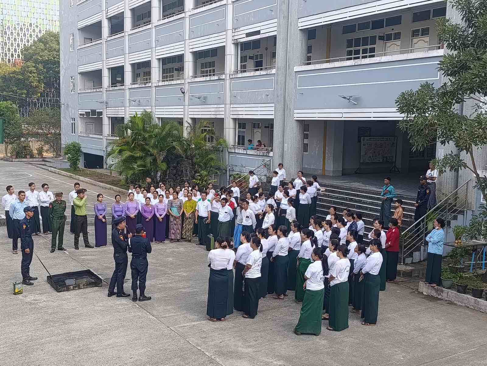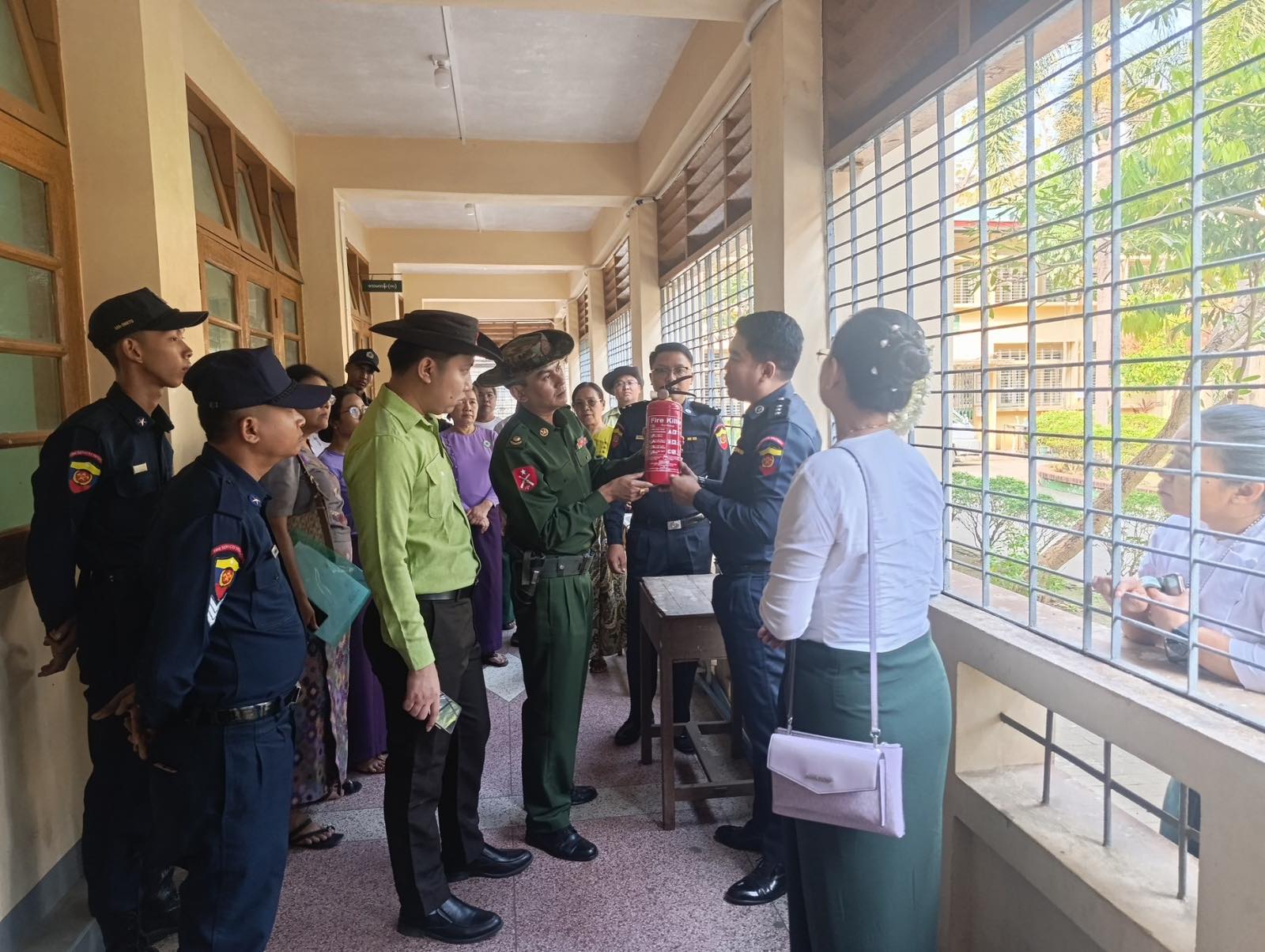 မတ်လ(၁၁)ရက်နေ့တွင် ကျင်းပမည့် ၂၀၂၅-၂၀၂၆ ပညာသင်နှစ် တက္ကသိုလ်ဝင်တန်းစာမေးပွဲ ဝင်ရောက်ဖြေဆိုကြမည့် ကျောင်းသား၊ ကျောင်းသူများ အေချမ်းစွာဖြင့် ဖြေဆိုနိုင်စေရန်ရည်ရွယ်၍ ယမန်နေ့နံနက် (၀၉:၀၀) အချိန်၊ ရန်ကုန်တိုင်းဒေသကြီး၊ ကမာရွတ်မြို့နယ်၊ အမှတ်(၉)ရပ်ကွက်၊ ပြည်လမ်းရှိ ရန်ကုန်ပညာရေးတက္ကသိုလ် လေ့ကျင့်ရေးအထက်တန်းကျောင်း (TTC) တွင်ကျင်းပပြုလုပ်မည့် တက္ကသိုလ်ဝင်တန်းစာမေးပွဲဖြေဆိုမည့် စာစစ်ဌာနအား မီးဘေးအန္တရာယ်လုံခြုံရေးအတွက် ကွင်းဆင်းစစ်ဆေးခြင်းနှင့် မီးငြှိမ်းသတ်နည်း သရုပ်ပြဆောင်ရွက်ခဲ့သည်။