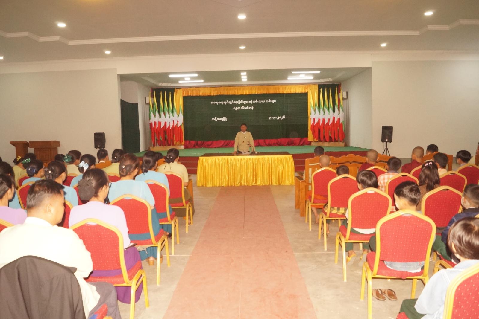 အခမ်းအနားတွင် ခရိုင်စီမံခန့်ခွဲရေးနှင့်အုပ်ချုပ်ရေးကော်မတီဥက္ကဋ္ဌ ခရိုင်အုပ်ချုပ်ရေးမှူး ဦးကိုကိုလှိုင်က နွေရာသီကျောင်းပိတ်ရက်များအတွင်း ကျောင်းသား၊ ကျောင်းသူများအား အချိန်ကိုအကျိုးရှိစွာအသုံးပြုတတ်စေရန်၊ ကိုယ်နှုတ်အမူအရာ ယဥ်ကျေးလိမ္မာစေရန်နှင့် အသိပညာဗဟုသုတများ တိုးပွားရရှိစေရေးအတွက် စာများများဖတ်ကြရန်တို့ကို ဆွေးနွေးပြောကြားခဲ့သည်။ ယင်းနောက် သင်တန်းသားများက တစ်ဦးချင်း မိတ်ဆက်ကြသည်။