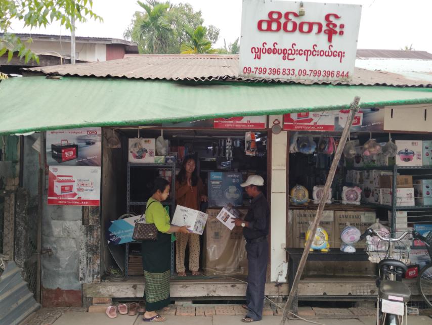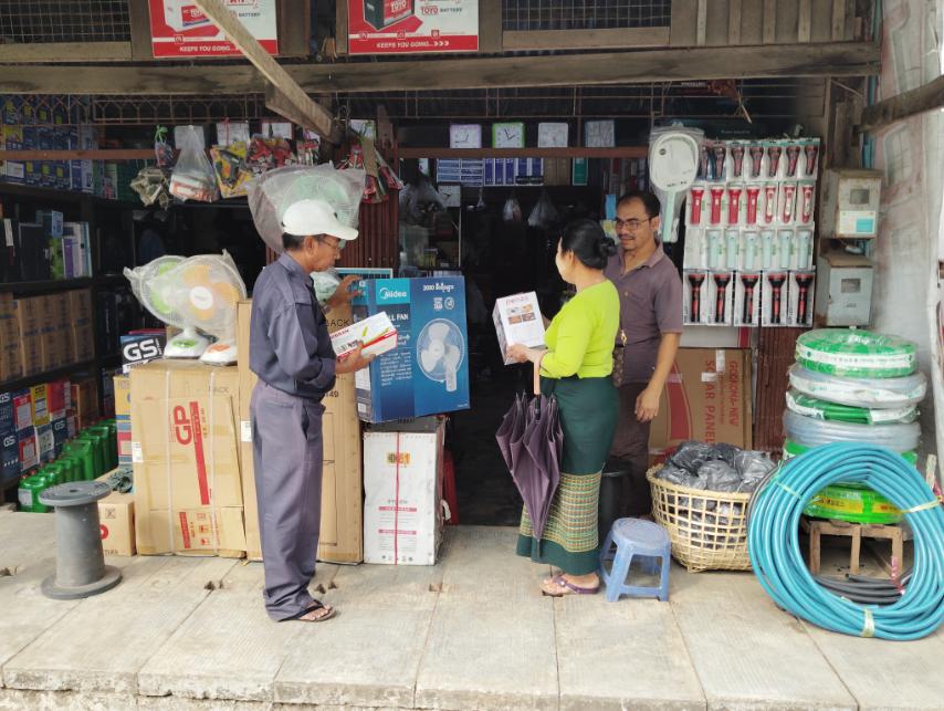 ကွင်းဆင်းစစ်ဆေးရာတွင် လျှပ်စစ်ရေနွေးအို၊ ထမင်းပေါင်းအို၊ မီးပူ၊ နံရံကပ်မျက်နှာကျက်ပန်ကာ၊ လေအေးပေးစက်တို့တွင် ပါရှိရမည့် ကုန်အညွှန်းအမှတ်အသားများ၊ ပြည့်စုံစွာပါဝင်မှု ရှိ/မရှိ စစ်ဆေးပြီး စားသုံးသူရေးရာဦးစီးဌာန မြို့နယ်တာဝန်ခံ ဒေါ်နွယ်နွယ်အေးက ယခုခေတ်ကာလတွင် လျှပ်စစ်ပစ္စည်းသုံးစွဲမှုများလာသည့်အလျှောက် လျှပ်စစ်ပစွည်းများကို ယခုကဲသို့ စစ်ဆေးရခြင်းဖြစ်ကြောင်းနှင့် အခြားကုန်စည်များတွင်လည်း ပါရှိရမည့် ကုန်အညွှန်အမှတ်အသားများ ပြည့်စုံစွာပါရှိမှသာ စားသုံးသူများ ဘေးကင်းလုံခြုံစိတ်ချရမည်ဖြစ်ကြောင်း လုပ်ငန်းရှင်များအား ဆွေးနွေးပြောကြားခဲ့ပါသည်။