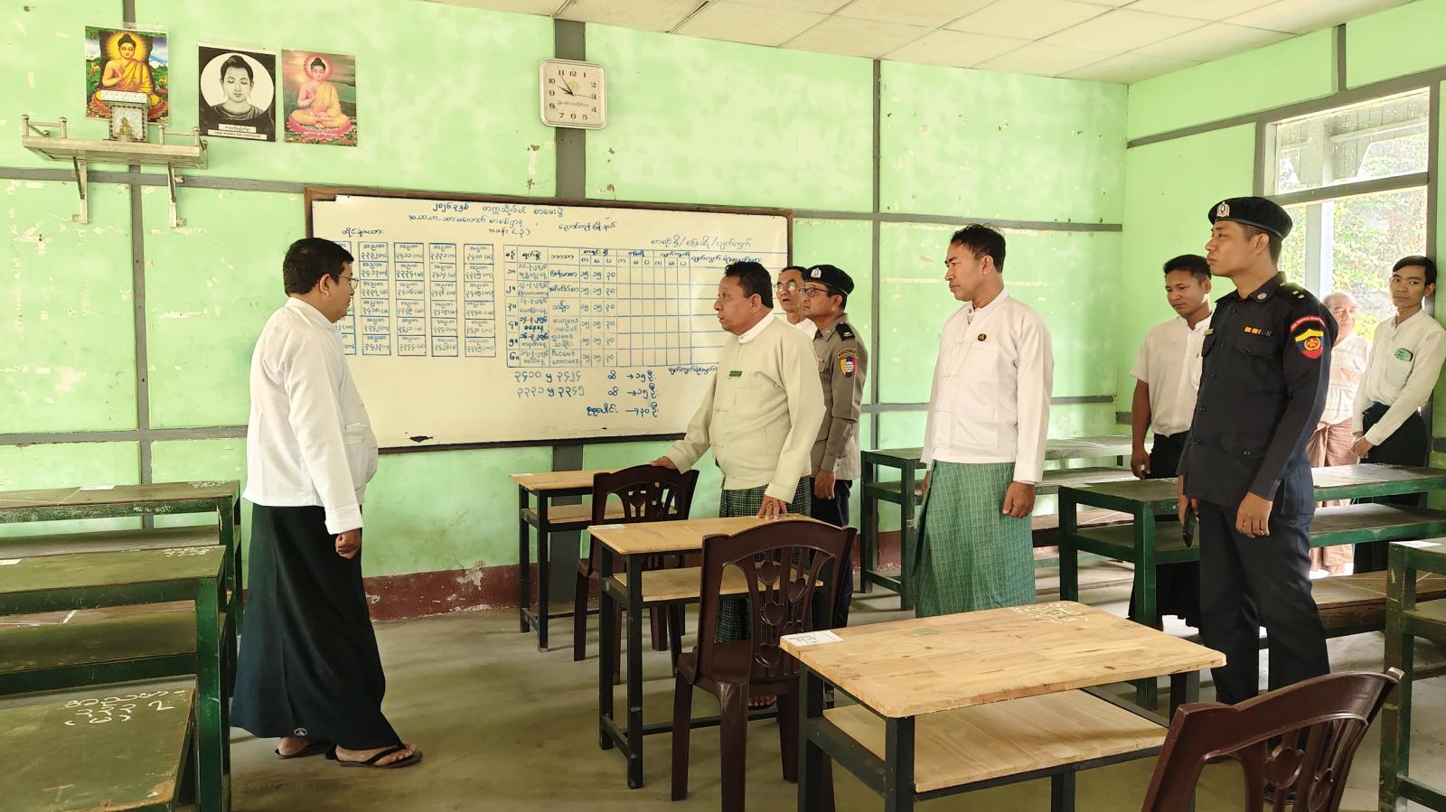 ထိုသို့ကြည့်ရှုစစ်ဆေးရာတွင် မြို့နယ်စီမံခန့်ခွဲရေးနှင့်အုပ်ချုပ်ရေးကော်မတီဥက္ကဋ္ဌ ဦးမျိုးကျော်နှင့် အဖွဲ့ဝင်များ၊ မြို့နယ်ပညာရေးမှူးနှင့် ဌာနဆိုင်ရာတာဝန်ရှိသူများက စာမေးပွဲအခန်းများ ပြင်ဆင်ထားမှု၊ စာမေးပွဲဖြေဆိုသည့်ကာလအတွင်း ကျောင်းသား၊ ကျောင်းသူများ အေးချမ်းစွာ ဖြေဆိုနိုင်ရေးနှင့် မီးဘေးအန္တရာယ်ကြိုတင်ကာကွယ်ရေး ဆောင်ရွက်ထားရှိမှု၊ လျှပ်စစ်မီးရရှိရေး အတွက် ဆောင်ရွက်ထားရှိမှု၊ ကျန်းမာရေးအခက်အခဲများဖြစ်ပေါ်ပါက စောင့်ရှောက်မှုပေးနိုင်ရန် ဆောင်ရွက်ထားရှိမှုများကို ကြည့်ရှုစစ်ဆေး၍ လိုအပ်သည်များကို ညှိနှိုင်းပေါင်းစပ်ဆောင်ရွက်ပေးခဲ့သည်။