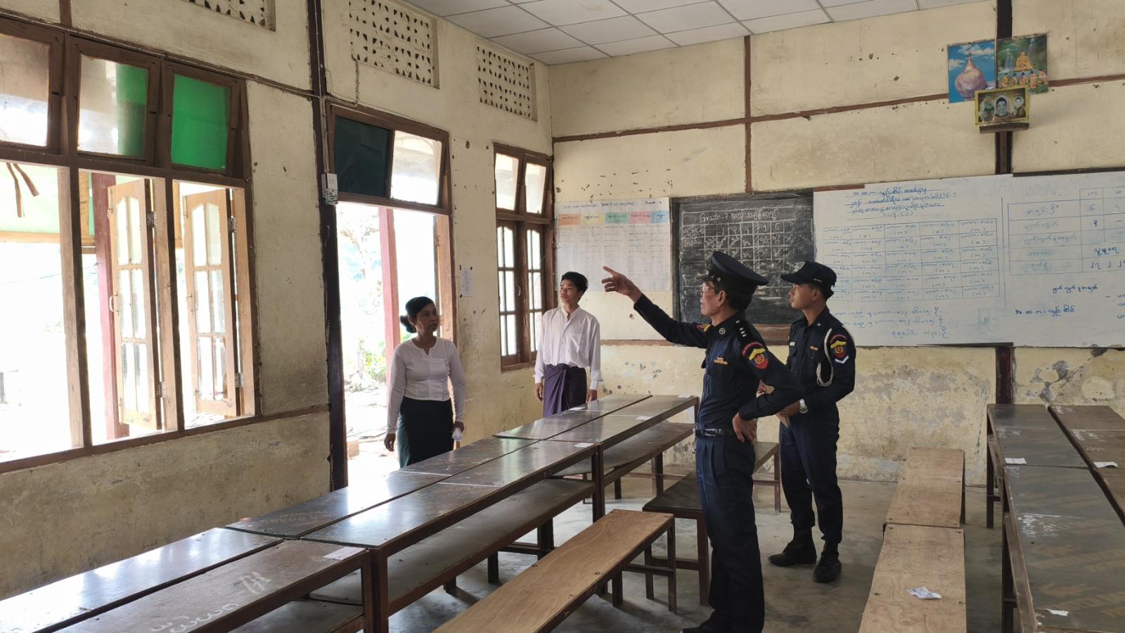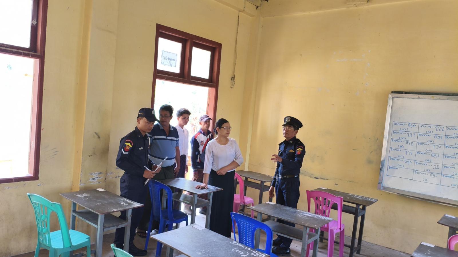 ဧရာဝတီတိုင်းဒေသကြီး၊ ကျုံပျော်ခရိုင်၊ ကျောင်းကုန်းမြို့နယ်အတွင်း တက္ကသိုလ်ဝင်စာမေးပွဲကျင်းပမည့် စာစစ်ဌာနများအား မီးဘေးအန္တရာယ် ကြိုတင်ကာကွယ်ရေးအတွက် ယမန်နေ့နံနက်ပိုင်းက လိုက်လံစစ်ဆေးခဲ့ကြသည်။
