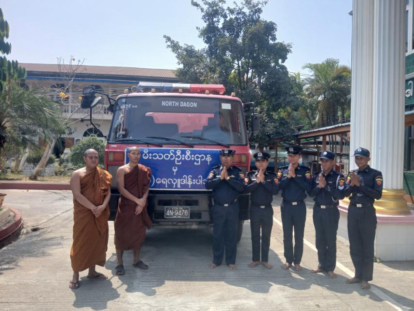 ရန်ကုန်တိုင်းဒေသကြီး၊ ဒဂုံမြို့သစ်ခရိုင်၊ ဒဂုံမြို့သစ် (မြောက်ပိုင်း) မြို့နယ်၊ (၄၂) ရပ်ကွက်၊ ဗိုလ်မှူးဗထူးလမ်းရှိ ဓမ္မစေတီ (ထေရဝါဒပရိယတ္တိစာသင်တိုက်)တွင် ရေအခက်အခဲရှိသောကြောင့် မတ်လ (၁၀)ရက်နေ့ နံနက်ပိုင်းမှ မွန်းလွဲပိုင်းအချိန်ထိ ဒဂုံမြို့သစ်(မြောက်ပိုင်း) မြို့နယ်မီးသတ်ဦးစီးဌာနမှ ကျောင်းတိုက်ရှိရေကန်များအတွင်းသို့ ရေများဖြည့်တင်းဆောင်ရွက်ပေးခဲ့ကြောင်း သိရသည်။