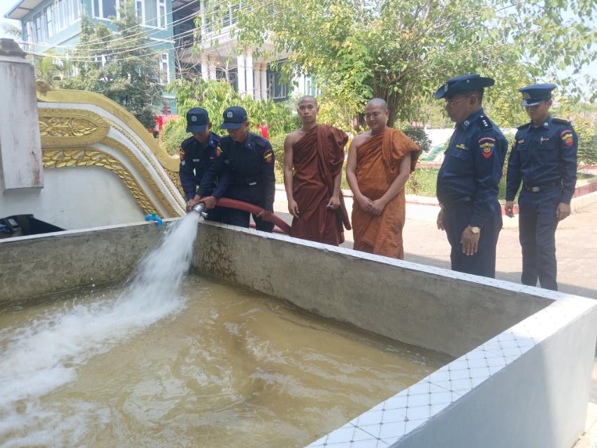 ဆက်လက်၍ မြို့နယ်မီးသတ်ဦးစီးဌာနအနေဖြင့် နယ်မြေအတွင်းရှိ ဘုန်းတော်ကြီးကျောင်းတိုက်များသို့ နွေရာသီကာလတွင် သောက်သုံးရေများပြတ်လတ်မှုမရှိစေရန်နှင့် ဖူလုံစွာသုံးစွဲနိုင်ရန် လှူဒါန်းပေးလျှက်ရှိကြောင်း သိရသည်။