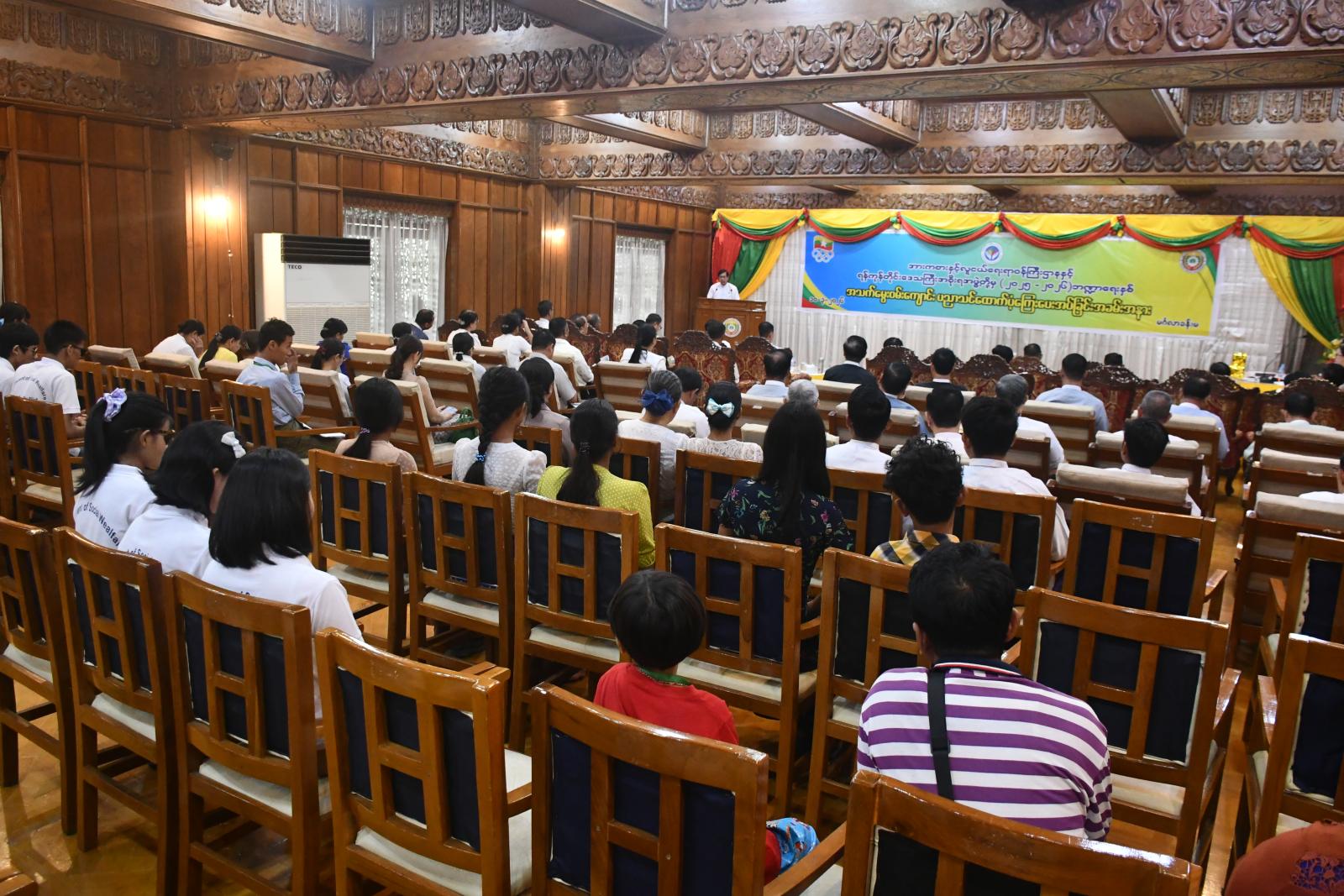 အားကစားနှင့်လူငယ်ရေးရာဝန်ကြီးဌာနနှင့် ရန်ကုန်တိုင်းဒေသကြီးအစိုးရအဖွဲ့တို့မှ (၂၀၂၅-၂၀၂၆) ဘဏ္ဍာရေးနှစ် အသက်မွေးဝမ်းကျောင်း ပညာသင်စရီတ်ချီးမြှင့်ငွေပေးအပ်ခြင်း အခမ်းအနားကို ယမန်နေ့ နံနက်ပိုင်းက ရန်ကုန်တိုင်းဒေသကြီးအစိုးရအဖွဲ့ရုံး၊ မင်္ဂလာခန်းမ(ငယ်)တွင် ကျင်းပရာ ရန်ကုန်တိုင်းဒေသကြီး လူငယ်ရေးရာကော်မတီဥက္ကဋ္ဌ၊ ရန်ကုန်တိုင်းဒေသကြီး ဝန်ကြီးချုပ် ဦးစိုးသိန်း၊ တိုင်းဒေသကြီးအစိုးရအဖွဲ့ဝင်များ၊ တိုင်းဒေသကြီး ဌာနဆိုင်ရာအကြီးအကဲများ၊ ရန်ကုန်တိုင်းဒေသကြီး လူငယ်ရေးရာကော်မတီအဖွဲ့ဝင်များ၊ ပုံမှန်ပညာမသင်ယူနိုင်သော ထိခိုက်လွယ်အုပ်စုတွင်ပါဝင်သည့် လူငယ်လူရွယ်များ၊ ဖိတ်ကြားထားသည့် ဧည့်သည်တော်များနှင့် တာဝန်ရှိသူများ တက်ရောက်ကြသည်။