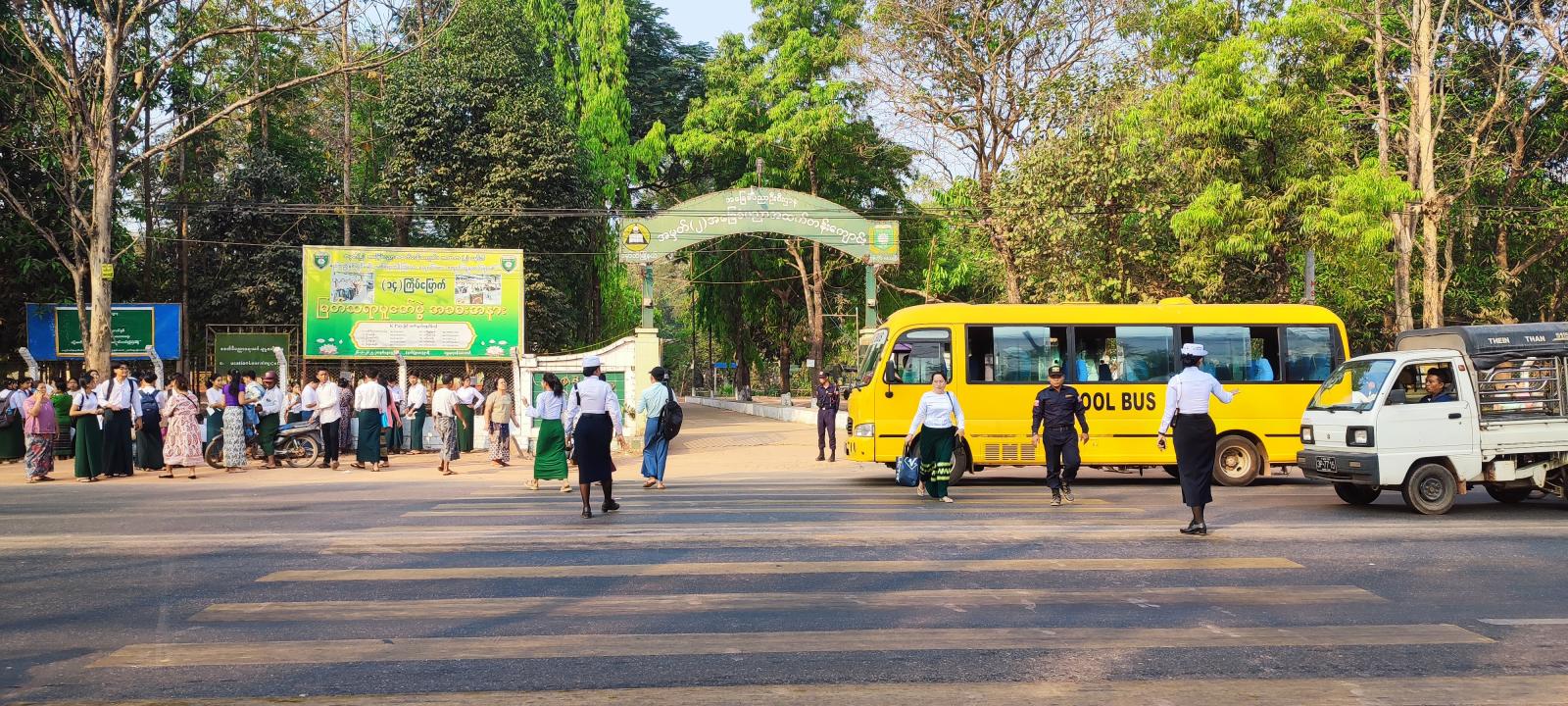 ကျောင်းသား၊ ကျောင်းသူများ အေးချမ်းစွာစာမေးပွဲဖြေဆိုနိုင်ရေးအတွက် မြို့နယ်စီမံခန့်ခွဲရေးနှင့်အုပ်ချုပ်ရေးကော်မတီ၊ အခြေခံပညာဦးစီးဌာနမှ တာဝန်ရှိသူများ၊ မြို့နယ်ရဲတပ်ဖွဲ့ဝင်များ၊ မြို့နယ်ဌာနဆိုင်ရာတာဝန်ရှိသူများ၊ ကျန်းမာရေးအဖွဲ့များ၊ မီးသတ်တပ်ဖွဲ့ဝင်များ၊ ရပ်ကွက်အုပ်ချုပ်ရေးအဖွဲ့မှ တာဝန်ရှိသူများနှင့် လုံခြုံရေးတပ်ဖွဲ့ဝင်များ ပူးပေါင်းကာဆောင်ရွက်ပေးလျက်ရှိကြောင်းလည်း သိရသည်။