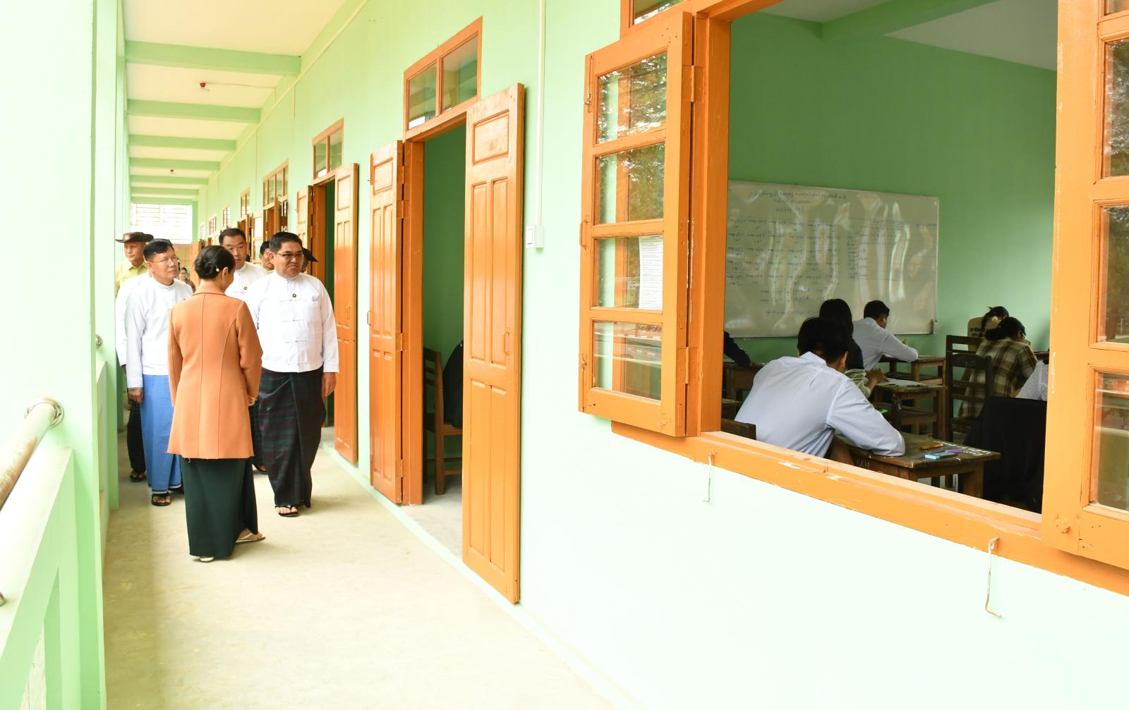 ထို့နောက် ပြည်နယ်ဝန်ကြီးချုပ်နှင့် တာဝန်ရှိသူများသည် အမှတ်(၈)အခြေခံပညာအထက်တန်းကျောင်း စာစစ်ဌာနသို့သွားရောက်ပြီး စာစစ်ဌာနအတွင်းရှိ စာသင်ဆောင်များအတွင်း စာဖြေခန်းများဖွင့်လှစ်၍ သတ်မှတ်ညွှန်ကြားချက်များနှင့်အညီ ကြီးကြပ်ရေးဆရာ၊ ဆရာမများနှင့် အဆိုပါ ကျောင်းအပါအဝင် အ.ထ.က(ခွဲ)-ရွာမကျောင်း၊ ကိုယ်ပိုင်အထက်တန်း ကျောင်းများဖြစ်သည့် မြစ်ကြီးနားစတား၊ ရွှေပြည်သစ်၊ ဟေရှဏ္ဏ၊ LLK ကျောင်းတို့မှ Grade-12 ကျောင်းသား/ကျောင်းသူများက စာမေးပွဲ ဒုတိယနေ့ အင်္ဂလိပ်စာ ဘာသာရပ်အားအေးချမ်းစွာဖြေဆိုနေမှုကို လှည့်လည်ကြည့်ရှုစစ်ဆေးခဲ့ကြပြီး ကျန်းမာရေးစောင့်ရှောက်မှုပေးရေးအဖွဲ့နှင့် စာမေးပွဲကြီးကြပ်ရေးမှူးရုံးအဖွဲ့တို့က စာမေးပွဲလုပ်ငန်းစဉ်များအတိုင်း ကြပ်မတ်ဆောင်ရွက်နေမှုအခြေအနေများကို ကြည့်ရှုစစ်ဆေးခဲ့ကြပြီး ချီးမြှင့်ထောက်ပံ့ငွေများကို ပေးအပ်ချီးမြှင့်ခဲ့ကြသည်။