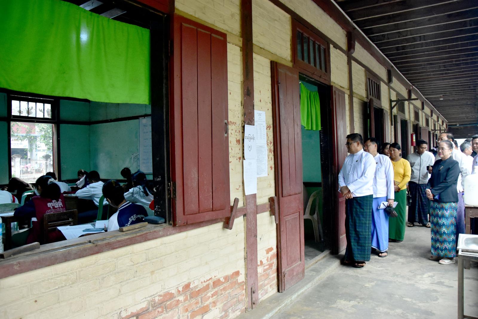 ထို့နောက် ပြည်နယ်ဝန်ကြီးချုပ်နှင့် တာဝန်ရှိသူများသည် အမှတ် (၇) အခြေခံပညာအထက်တန်းကျောင်း စာစစ်ဌာနသို့ သွားရောက်ပြီး စာစစ်ဌာနအတွင်းရှိ စာသင်ဆောင်များအတွင်း စာဖြေခန်းများဖွင့်လှစ်၍ သတ်မှတ်ညွှန်ကြားချက်များနှင့်အညီ ကြီးကြပ်ရေးဆရာ၊ ဆရာမများနှင့် ကျောင်းသား/ ကျောင်းသူများ အေးချမ်းစွာဖြေဆိုနေမှုကို လှည့်လည်ကြည့်ရှုစစ်ဆေးခဲ့ကြပြီး ကျန်းမာရေး စောင့်ရှောက်မှုပေးရေးအဖွဲ့နှင့် စာမေးပွဲကြီးကြပ်ရေးမှူးရုံးအဖွဲ့အား တွေ့ဆုံအားပေးကာ ချီးမြှင့်ထောက်ပံ့ငွေများကို ပေးအပ်ချီးမြှင့်ခဲ့ကြသည်။