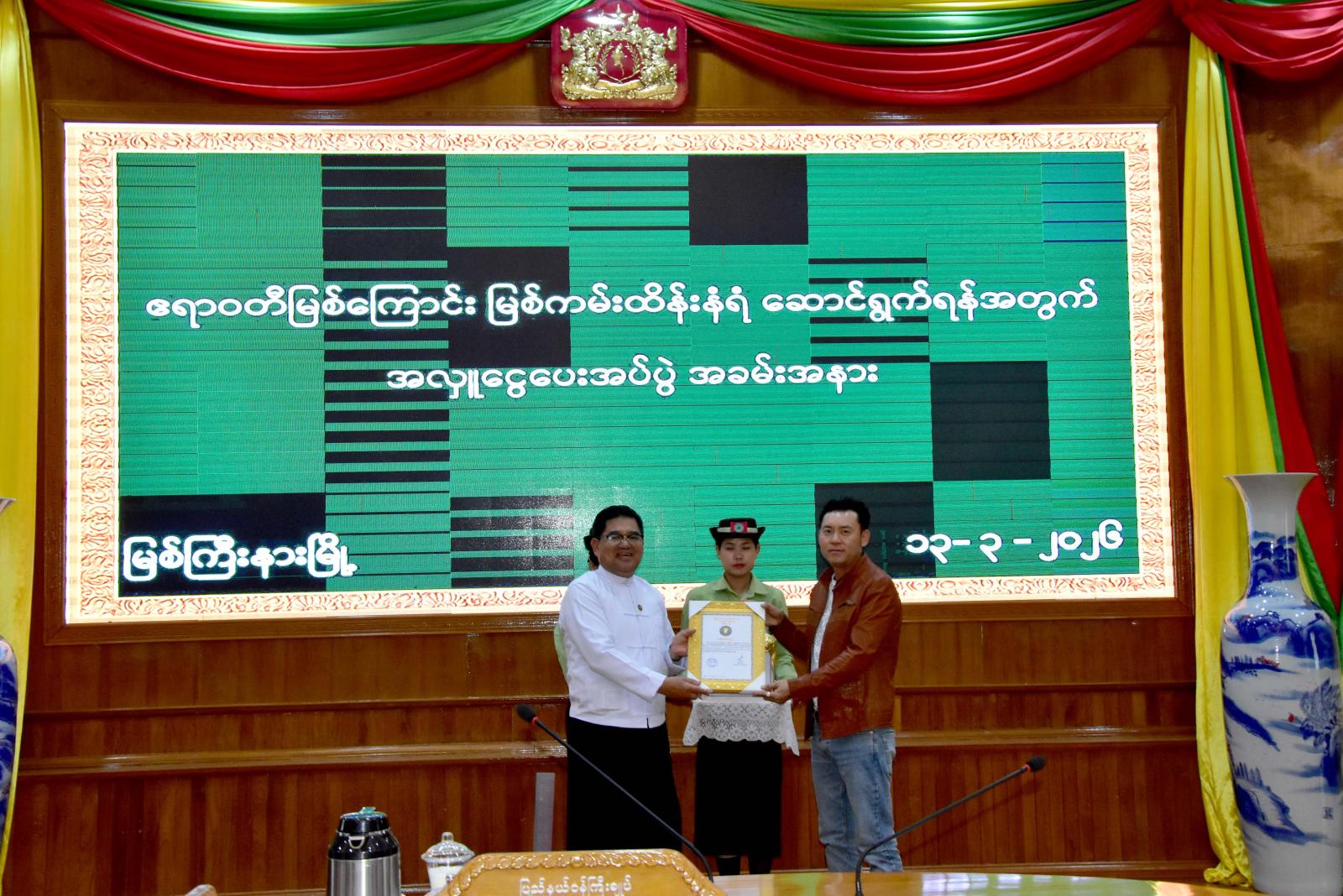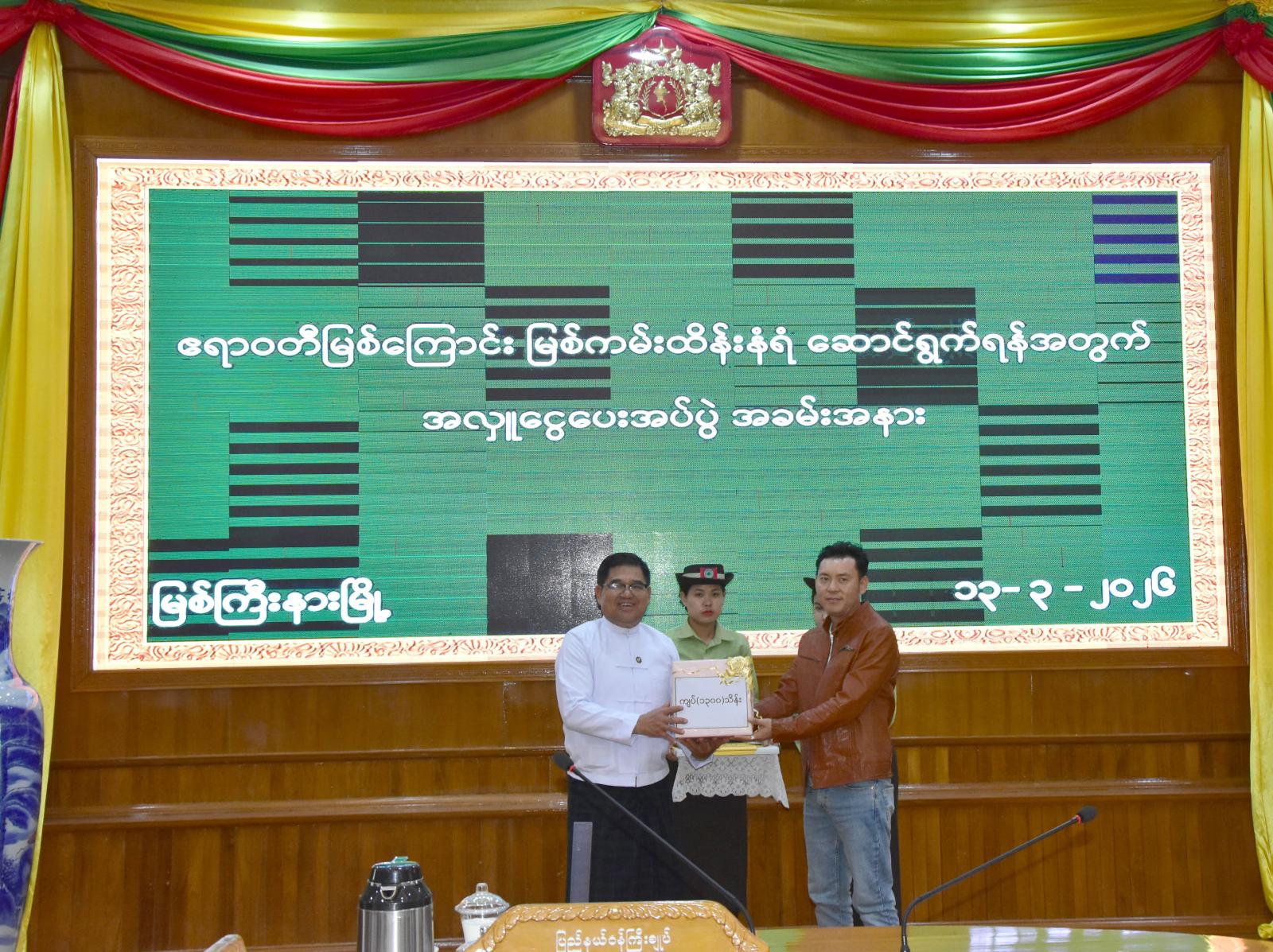 ဆက်လက်၍ တက်ရောက်လာကြသည့် စီးပွားရေးလုပ်ငန်းရှင်များ၊ ကုမ္ပဏီလုပ်ငန်းရှင်များနှင့် အလှူရှင်များက ကမ်းထိန်းလုပ်ငန်းများ တည်ဆောက်နိုင်ရေးနှင့် မြစ်ကြောင်းရှင်းလင်းရေး လုပ်ငန်းများအတွက် အလှူငွေကျပ်စုစုပေါင်း ၁၂၆၉,၀၀၀,၀၀၀ ကို ပေးအပ်လှူဒါန်းရာ ပြည်နယ်ဝန်ကြီးချုပ်က လက်ခံရယူခဲ့ပြီး အလှူရှင်များအတွက် ကျေးဇူးတင်ဂုဏ်ပြုမှတ်တမ်းလွှာများကို ပြန်လည်ပေးအပ်ချီးမြှင့်ခဲ့ကာ ပြည်နယ်ဝန်ကြီးချုပ်က နိဂုံးချုပ်ကျေးဇူးတင်စကားပြောကြားခဲ့သည်။