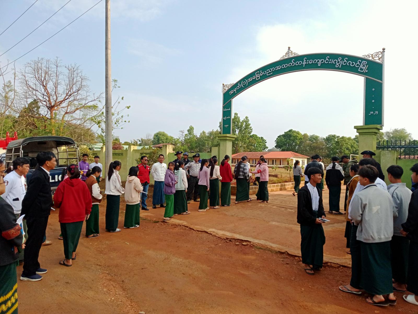ရှမ်းပြည်နယ်အစိုးရအဖွဲ့၊ ပြည်နယ်လူမှုရေးရာဝန်ကြီး ဦးမင်းမင်းလွင်သည် လွိုင်လင်ခရိုင် တာဝန်ရှိသူများနှင့်အတူ ၂၀၂၆ ခုနှစ် တက္ကသိုလ်ဝင်တန်းစာမေးပွဲဖြေဆိုနေကြသည့် လွိုင်လင်မြို့ အ.ထ.က(၁)၊ စာစစ်ဌာနနှင့် ပင်လုံမြို့ အ.ထ.က(၁) စာစစ်ဌာနများသို့ ယမန်နေ့ နံနက်ပိုင်းက သွားရောက်၍ ကျောင်းသား/ ကျောင်းသူများ စိတ်အေးချမ်းမြေ့စွာ စာမေးပွဲဖြေဆိုနေမှုကို ကြည့်ရှုစစ်ဆေးအားပေးခဲ့သည်။
