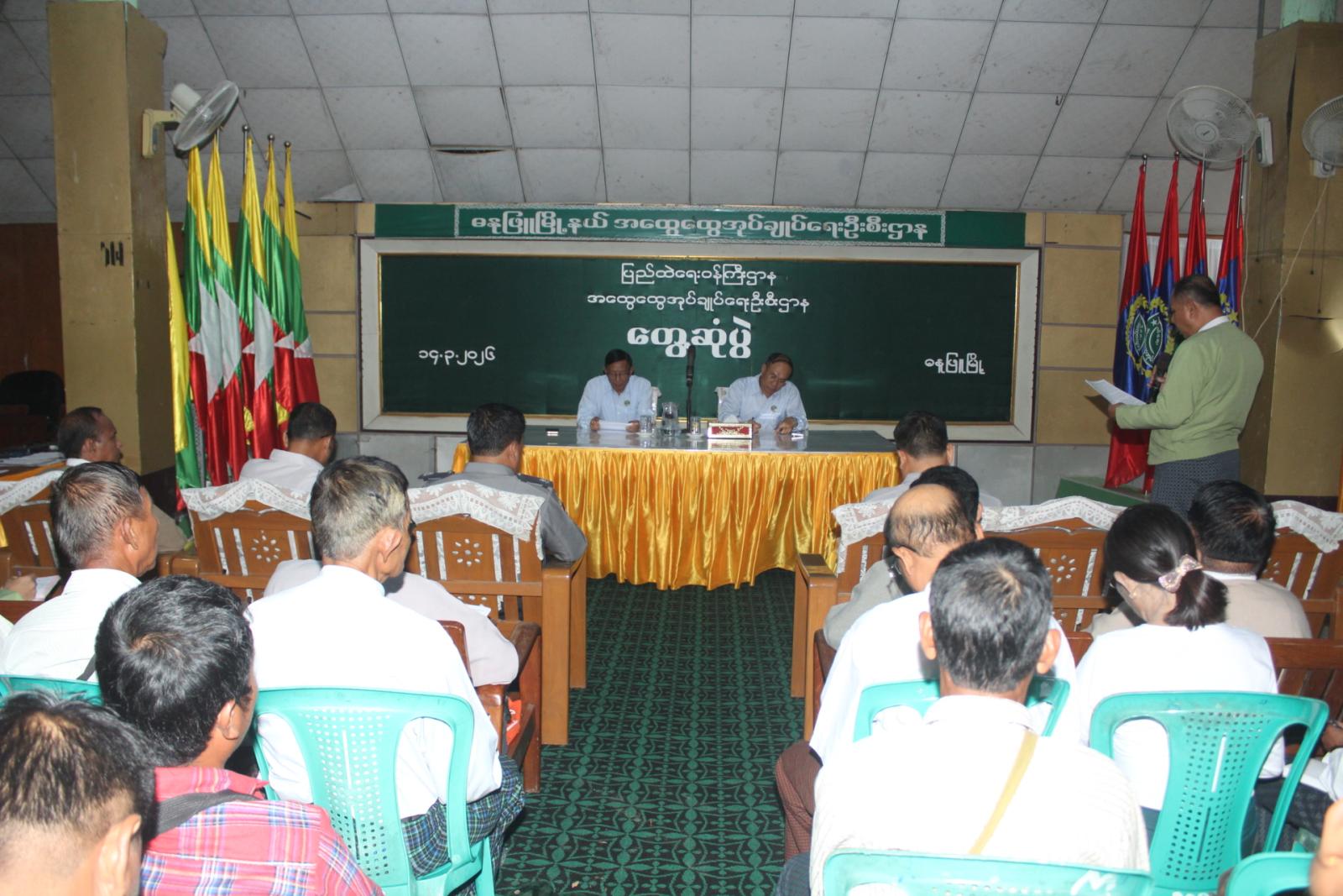 ဧရာဝတီတိုင်းဒေသကြီးအစိုးရအဖွဲ့ဝင်၊ လမ်းပန်းဆက်သွယ်ရေးဝန်ကြီး ဦးအောင်စန်းချစ်နှင့် လူမှုရေးရာဝန်ကြီး ဦးခင်မောင်ကြည်တို့သည် မတ်လ ၁၄ ရက်နေ့ ညနေပိုင်းက မြို့နယ်အထွေထွေအုပ်ချုပ်ရေးဦးစီးဌာနရုံးသို့ ရောက်ရှိကာ မြို့နယ်အတွင်း ၂၀၂၅-၂၀၂၆ ခုနှစ်၊ မိုးစပါးနိုင်ငံ့စီးပွားမြှင့်တင်ရေးရန်ပုံငွေ အစီအစဉ်တွင် ပါဝင်ခြင်းမရှိသော တောင်သူများနှင့် တွေ့ဆုံပွဲ ကျင်းပပြုလုပ်သည်။