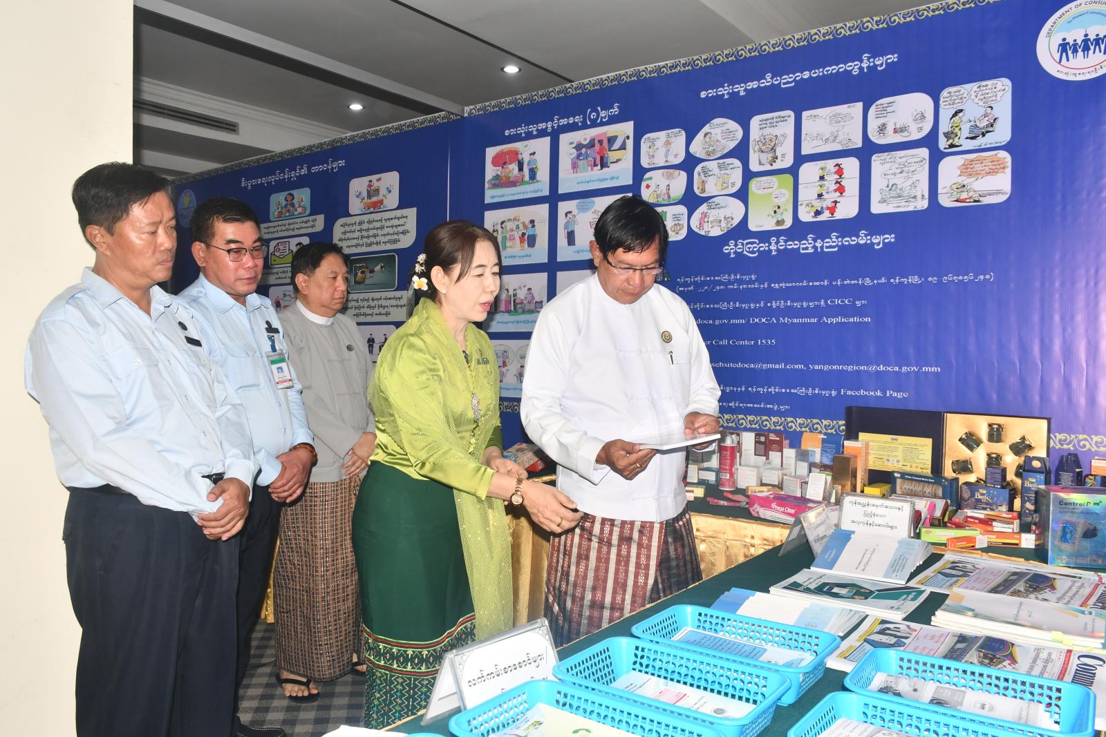 အခမ်းအနားအပြီးတွင် တိုင်းဒေသကြီးဝန်ကြီးချုပ်နှင့် ဧည့်သည်တော်များက ဌာနဆိုင်ရာများ ပူးပေါင်း၍ ပြသထားသည့် စားသုံးသူအသိပညာပေးပြခန်းကို လှည့်လည်ကြည်ရူ့အားပေးကြကြောင်း သိရသည်။