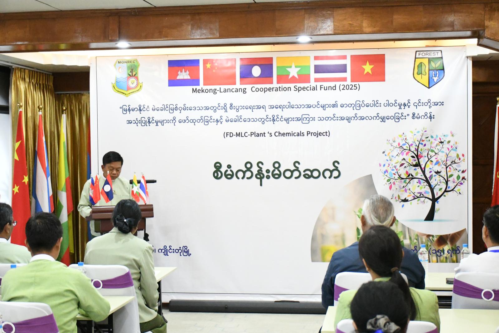ရှမ်းပြည်နယ်(အရှေ့ပိုင်း)၊ ကျိုင်းတုံမြို့၌ မဲခေါင်-လန်ချန်းပူးပေါင်းဆောင်ရွက်မှု အထူးရန်ပုံငွေ (၂၀၂၅)အစီအစဉ်ဖြင့် ဆောင်ရွက်လျက်ရှိသည့် မြန်မာနိုင်ငံမဲခေါင်မြစ်ဝှမ်းဒေသအတွင်းရှိ စီးပွားရေးအရအရေးပါသောအပင်များ၏ ဓာတုဒြပ်ပေါင်းပါဝင်မှုနှင့် ၎င်းတို့အား အသုံးပြုနိုင်မှုများကိုဖော်ထုတ်ခြင်းနှင့် မဲခေါင်ဒေသအတွင်း နိုင်ငံများအကြား သတင်းအချက်အလက်မျှဝေခြင်း (FD-MLC Plant’s Chemical) စီမံကိန်းမိတ်ဆက် အခမ်းအနားကို ယမန်နေ့က ဟွမ်ဟိန်းဟိုတယ်တွင် ကျင်းပသည်။