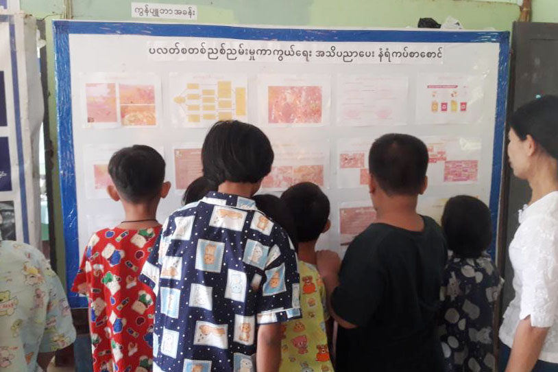 ထို့နောက် အသိပညာဗဟုသုတရရှိရေးအတွက် မူးယစ်ဆေးဝါးအန္တရာယ်တားဆီးကာကွယ်ရေးနှင့် ပလတ်စတစ်ညစ်ညမ်းမှုကာကွယ်ရေး နံရံကပ်ဘုတ်များပြသရာ ကျောင်းသား၊ ကျောင်းသူကလေးများက လေ့လာကြည့်ရှုခဲ့ကြောင်း သိရသည်။