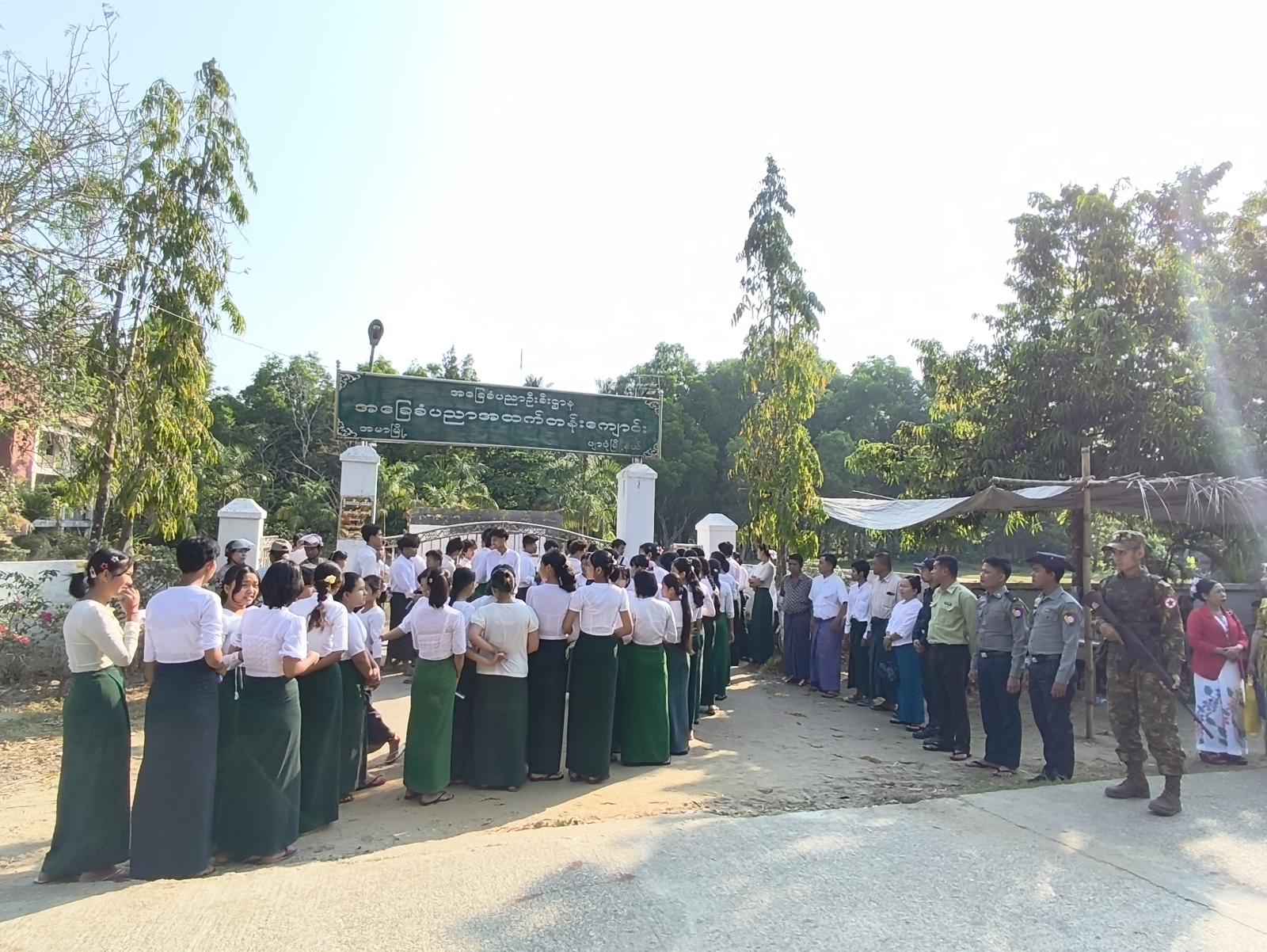 ဧရာဝတီတိုင်းဒေသကြီး၊ ဖျာပုံခရိုင်၊ အမာမြို့တွင် ၂၀၂၅-၂၀၂၆ ပညာသင်နှစ် တက္ကသိုလ်ဝင် စာမေးပွဲကို ရူပဗေဒဘာသာနှင့် သမိုင်းဘာသာရပ်များကို အ.ထ.က(အမာ) စာစစ်ဌာန၌ ယနေ့ နံနက် ၉ နာရီမှစ၍ အေးချမ်းစွာ ဖြေဆိုလျက်ရှိကြောင်း သိရသည်။