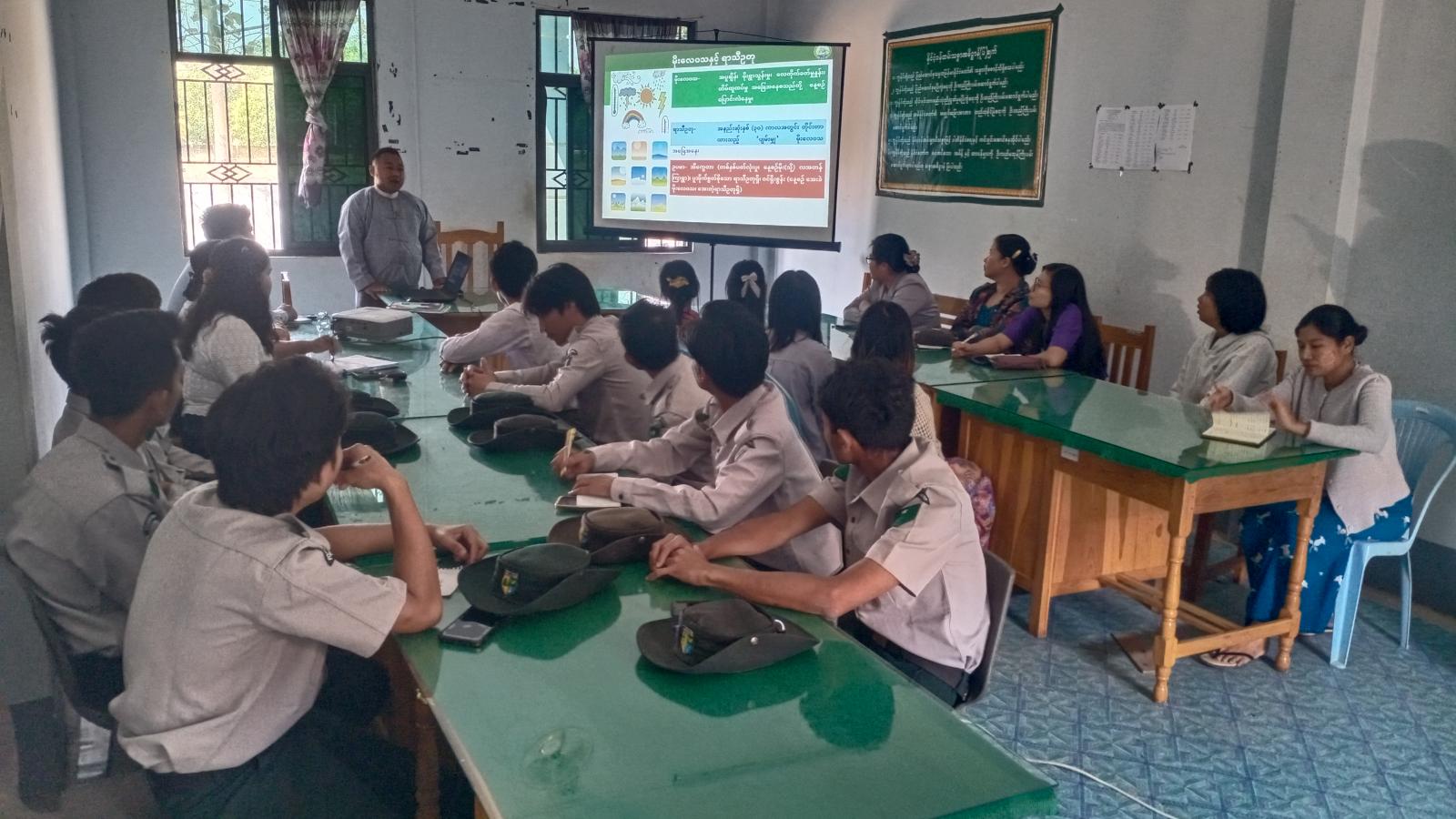 သင်တန်းဖွင့်ပွဲတွင် ခရိုင်ပတ်ဝန်းကျင်ထိန်းသိမ်းရေးဦးစီးဌာန ခရိုင်တာဝန်ခံ ဦးညီညီစိုးက သင်တန်းဖွင့်လှစ်ရခြင်း ရည်ရွယ်ချက်များအား ရှင်းလင်းပြောကြားပြီး ပတ်ဝန်းကျင်ထိန်းသိမ်းအကြောင်း၊ ဒုတိယဦးစီးမှူး ဒေါ်ဇင်နွယ်ဦးက မီးခိုးမြူငွေ့ညစ်ညမ်းမှုအန္တရယ်၊ဒုတိယဦးစီးမှူး ဒေါ်မွန်မွန်သော်က အဖိုးတန်ရေသယံဇာတထိန်းသိမ်းကြ၊ ဒုတိယဦးစီးမှူး ဦးကျော်မျိုးထက်က ရာသီဥ တုပြောင်းလဲမှုကြောင့် ဖြစ်ပေါ်လာသောဆိုးကျိုးများ၊ ခရိုင်ပြန်ကြားရေးနှင့်ပြည်သူ့ဆက်ဆံရေးဦးစီးဌာန ဦးစီးအရာရှိ ဒေါ်ခိုင်ဇင်က အမျိုးသမီးများနှင့် ပတ်ဝန်းကျင်ထိန်းသိမ်းရေးကဏ္ဍ၊ ခရိုင်စားသုံးသူရေး ရာဦးစီးဌာန မြို့နယ်တာဝန်ခံ ဦးမျိုးဝင်းသန်းက စားသုံးသူများနှင့် ပတ်ဝန်းကျင်အပေါ်အကျိုးသက်ရောက်မှု စသည့်ခေါင်းစဥ်များဖြင့် ဆွေးနွေးဟောပြောကြသည်။