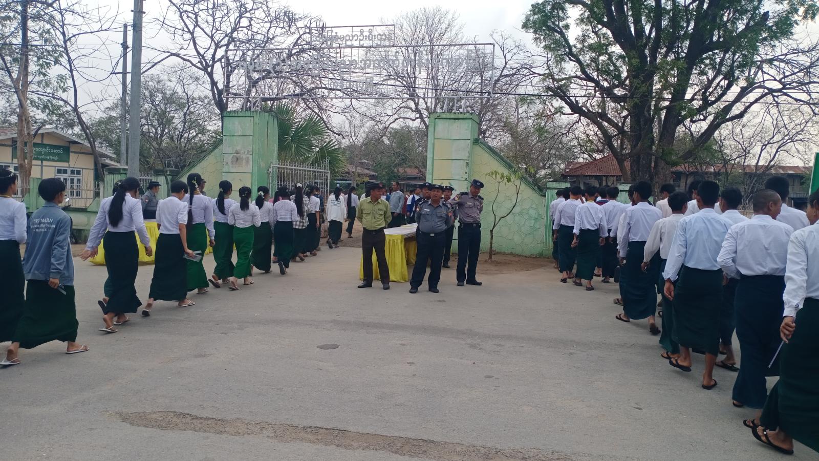ကျောင်းသားကျောင်းသူများ စာမေးပွဲကို စိတ်အေးချမ်းသာစွာ ဖြေဆိုနိုင်ရေးအတွက် ခရိုင်နှင့် မြို့နယ်စီမံခန့်ခွဲရေးနှင့် အုပ်ချုပ်ရေးကော်မတီအဖွဲ့များ၏ ကြီးကြပ်မှုဖြင့် ဆရာ ဆရာမများ၊ ဌာနဆိုင်ရာများ၊ နယ်မြေလုံခြုံရေးတာဝန်ရှိသူများ၊ ရပ်ကွက်အုပ်ချုပ်ရေးမှူးများ ပူးပေါင်း၍ လိုအပ်သည်များ ဝိုင်းဝန်းကူညီဆောင်ရွက်ပေးလျက်ရှိကြောင်း သိရသည်။