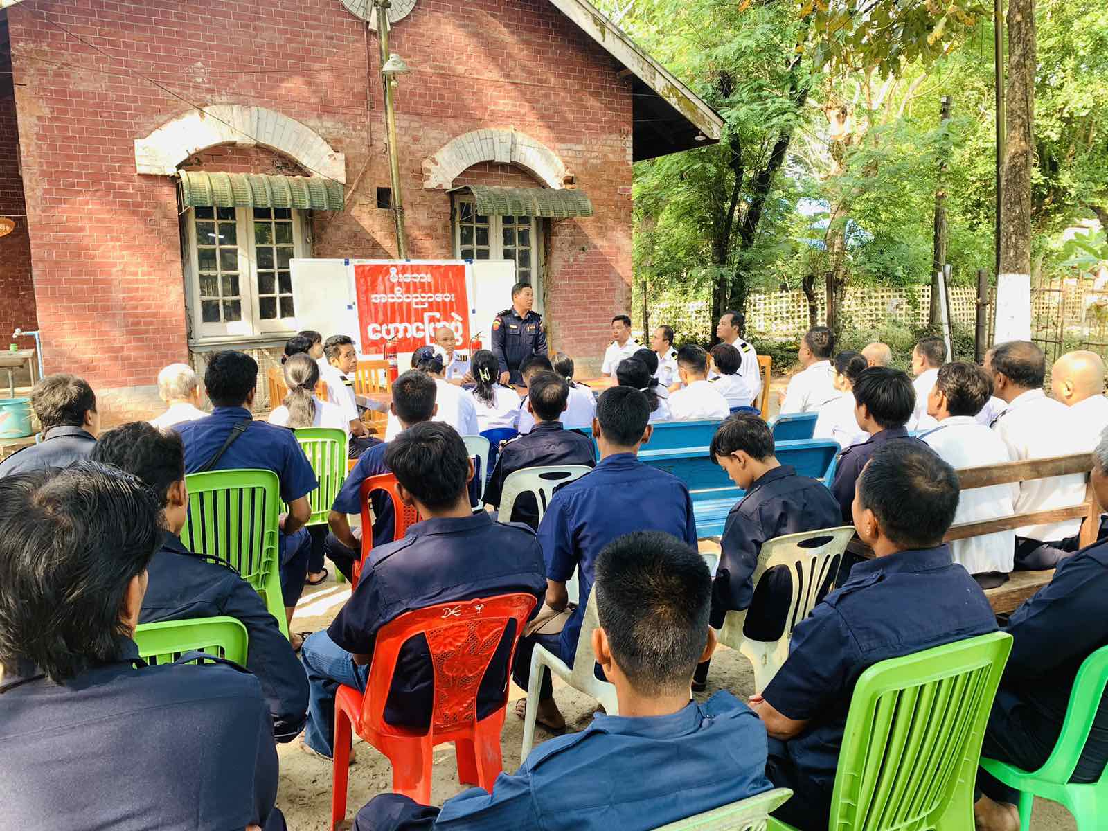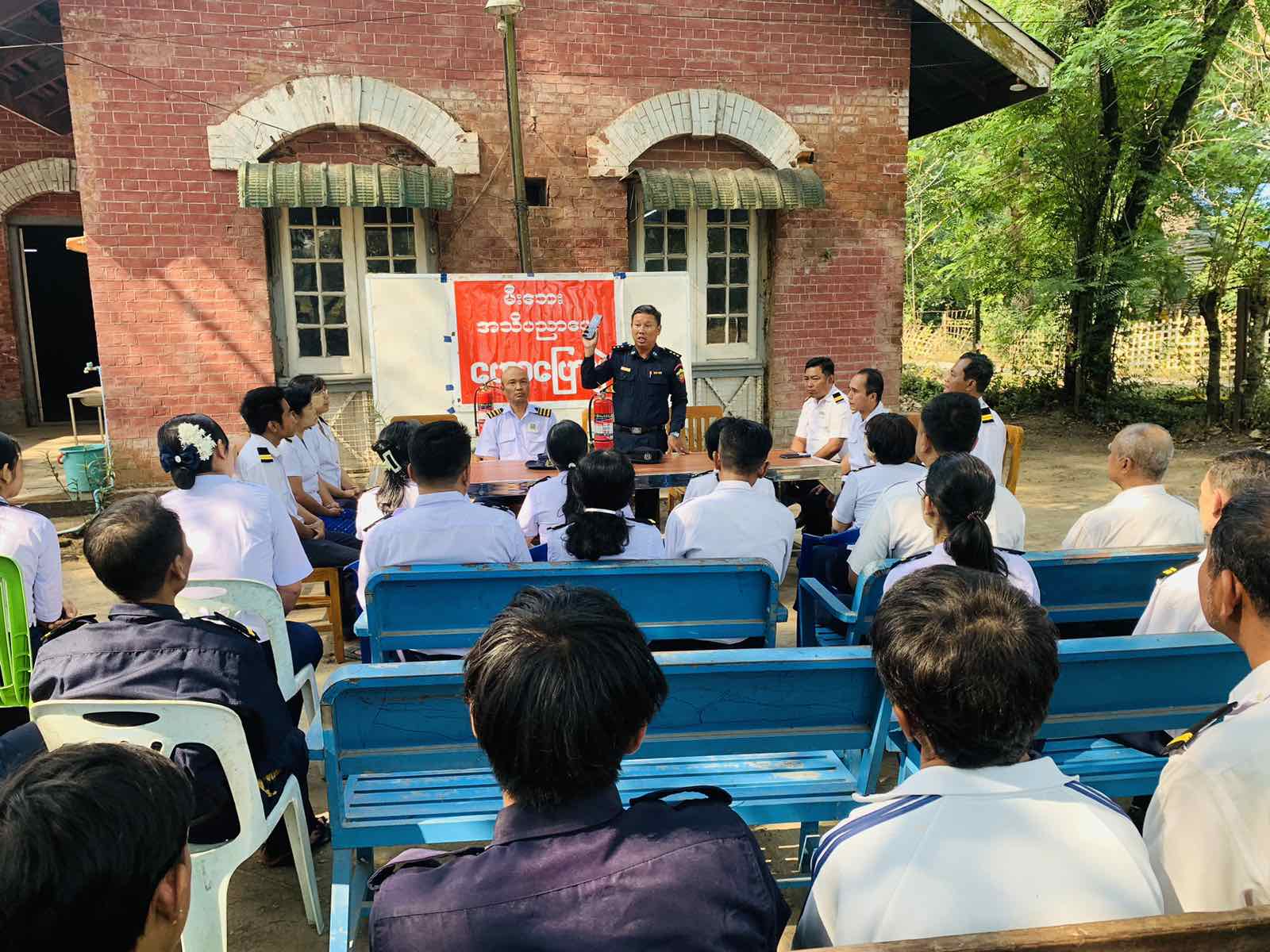 အသိပညာပေးဟောပြောပွဲ အခမ်းအနားတွင် ရှေးဦးစွာ မြန်မာ့မီးရထားတိုင်း(၉)ရုံးမှ တိုင်းမန်နေဂျာ ဦးအောင်ဇော်မြင့်က အဖွင့်အမှာစကားနှင့် ကျေးဇူးတင်စကား ပြောကြားခဲ့သည်။ ဆက်လက်၍ မြို့နယ်မီးသတ်ဦးစီးမှူးဦးဥက္ကာက မီးလောင်မှုဖြစ်ပွားရသော အကြောင်းအရင်းများ၊ ပေါ့ဆမီးများကြောင့် မီးဘေးအန္တရာယ် ဖြစ်ပွားမှုများ၊ မီးဘေးကြိုတင်ကာကွယ်ရေးလုပ်ငန်းစဉ်များ၊ မီးလောင်မှုဖြစ်ပွားပါက အရေးပေါ်မီးငြိမ်းသတ်နိုင်ရေးအတွက် မီးသတ်ဆေးဗူးများအသုံးပြုပုံနှင့် သက်ဆိုင်ရာသို့ဆက်သွယ် အကြောင်းကြားမှုလုပ်ငန်းစဉ်များ၊ ရုံးများ၊နေအိမ်/အဆောင်များတွင် လျှပ်စစ်မီး အသုံးပြုမှုအတွက် မီးဘေးအန္တရာယ် မဖြစ်ပွားစေရေး ဆောင်ရန်၊ ရှောင်ရန်များအား အသိပညာပေး ဟောပြောခဲ့သည်။ ထို့နောက် မြို့နယ်မီးသတ်ဦးစီးမှူး ဦးဥက္ကာ ဦးဆောင်သော တပ်ဖွဲ့ဝင်များနှင့်မြန်မာ့မီးရထားတိုင်း(၉)ရုံးမှ တိုင်းမန်နေဂျာ ဦးအောင်ဇော်မြင့် ဦးဆောင်သော ဝန်ထမ်းများက မီးသတ်ဆေးဘူး လက်တွေ့အသုံးပြုနည်းနှင့် လက်တွေ့မီးငြိမ်းသတ်ခြင်းတို့အား လက်တွေ့သရုပ်ပြလေ့ကျင့် ဆောင်ရွက်ခဲ့ကြောင်းသိရသည်။