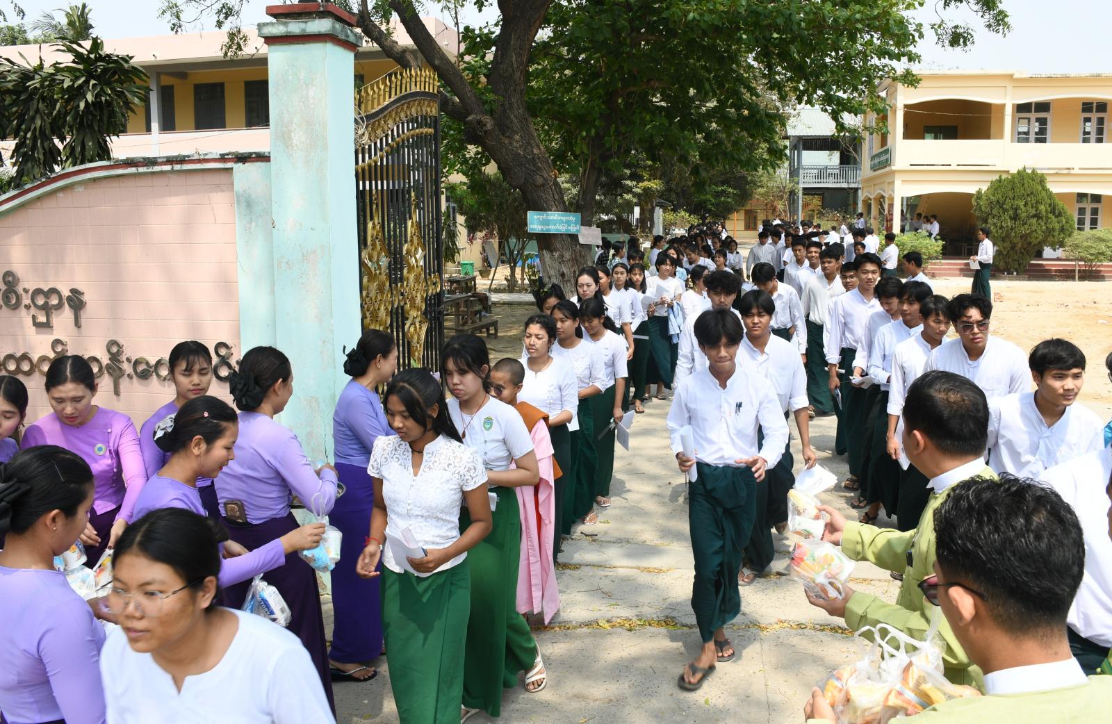 အဆိုပါစာစစ်ဌာနငါးခုတွင် တက္ကသိုလ်ဝင်စာမေးပွဲဖြေဆိုပြီးသော ကျောင်းသား/ ကျောင်းသူများအား ခရိုင်စီမံခန့်ခွဲရေးနှင့် အုပ်ချုပ်ရေးကော်မတီဥက္ကဋ္ဌ ဦးထွန်းထွန်းဝင်း၊ ခရိုင်အမျိုးသမီးရေးရာအဖွဲ့နှင့် မိခင်နှင့်ကလေးစောင့်ရှောက်မှု ကြီးကြပ်ရေးအဖွဲ့ဥက္ကဋ္ဌ ဒေါ်စိုးစိုးအိနှင့်အဖွဲ့ဝင်များက အချိုရည်နှင့်မုန့်များ ဝေငှပေးခဲ့ကြောင်းသိရသည်။
