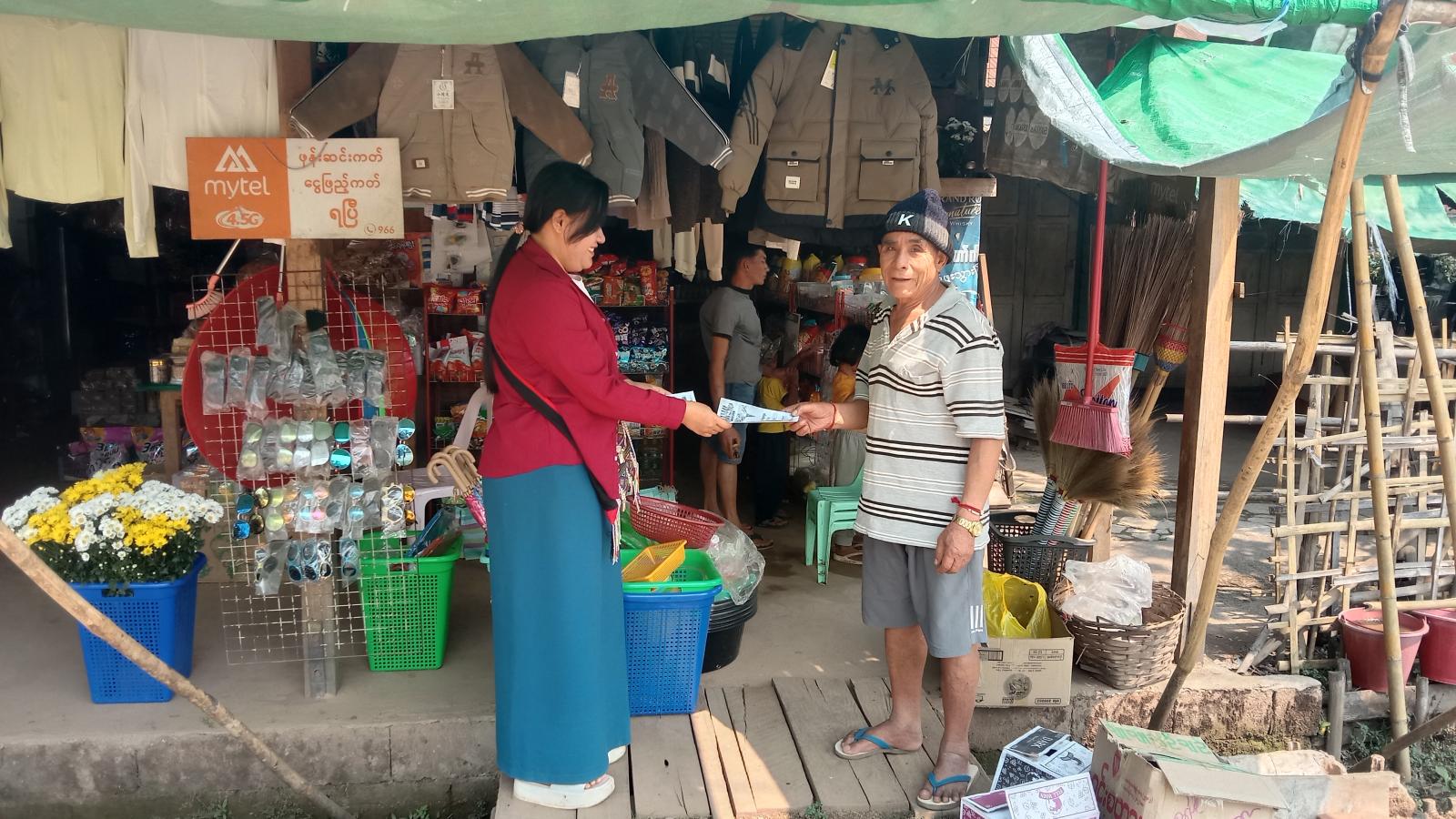 ၈၁ နှစ်မြောက် တပ်မတော်နေ့အထိမ်းအမှတ် သတင်းစကားလက်ကမ်းစာစောင်ဖြန့်ဝေခြင်းကို ပြန်ကြားရေးနှင့်ပြည်သူ့ဆက်ဆံရေးဦးစီးဌာန၊ မိုင်းခုတ်မြို့ရုံးမှ ဝန်ထမ်းများက မိုင်းခုတ်မြို့ပေါ်ရပ်ကွက်များနှင့် တပ်ရင်းတပ်ဖွဲ့များတွင် ဆောင်ရွက်ခဲ့ကြောင်း သိရသည်။