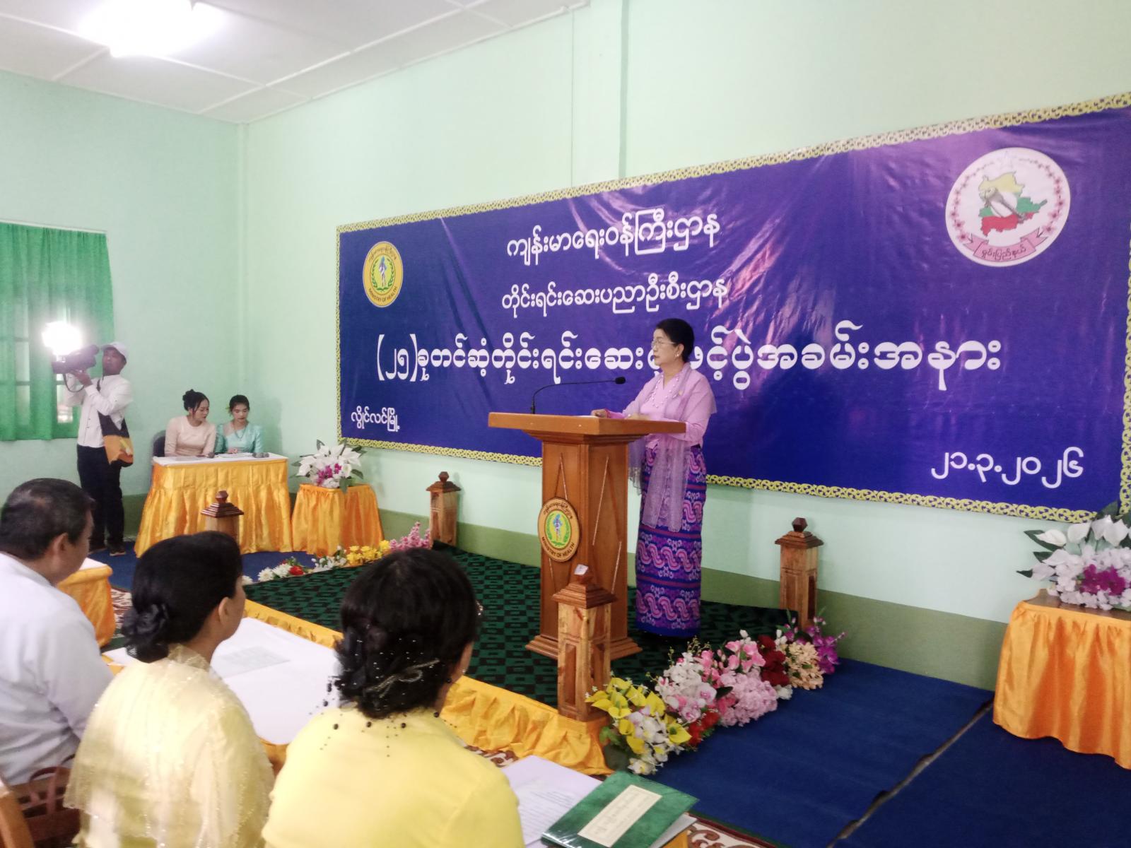 ဦးစွာ ဆေးရုံသစ်အား ပြည်နယ်အစိုးရအဖွဲ့ ပြည်နယ်လူမှုရေးရာဝန်ကြီး ဦးမင်းမင်းလွင်၊ အရှေ့အလယ်ပိုင်းတိုင်း စစ်ဌာနချုပ် ဒုတိယတိုင်းမှုး ဗိုလ်မှုးချုပ် အောင်ကိုဝင်းနှင့် တာဝန်ရှိသူများမှ ဖဲကြိုးဖြတ်၍ ဖွင့်လှစ်ပေးသည်။ ယင်းနောက် ပြည်နယ်အစိုးရအဖွဲ့ ဝန်ကြီးနှင့်တာဝန်ရှိသူများမှ ဘင်ခရာအဖွဲ့၊ ပန်းဖွားအကအဖွဲ့နှင့် ကိန္နရီ၊ ကိန္နရာအကအဖွဲ့များအား ဂုဏ်ပြုဆုများချီးမြှင့်ပေးပြီးနောက် ယဉ်ကျေးမှုအဖွဲ့များနှင့် စုပေါင်းမှတ်တမ်းဓာတ်ပုံရိုက်ကူးပြီး ကမ္မည်းမော်ကွန်း အားအမွေးနံ့သာရည်နှင့် ပက်ဖြန်းပေးခဲ့ကြသည်။ ယင်းနောက် ဒုတိယပိုင်းအစီအစဉ်ကို ဆက်လက်ကျင်းပရာပြည်နယ် လူမှုရေးရာဝန်ကြီးက ဂုဏ်ပြုအမှာစကားပြောကြားခြင်း၊ တိုင်းရင်းဆေးပညာဦးစီးဌာနမှ ညွန်ကြားရေးမှုးချုပ် ဒေါက်တာစုစုဒွေးမှ ဆေးရုံသစ်ဖွင့်လှစ်ပေးရခြင်းတို့ကို ရှင်းလင်းပြောကြားသည်။ ထို့နောက် ဒေသခံတစ်ဦးက ကျေးဇူးတင်စကား ပြန်လည်ပြောကြားခဲ့သည်။ ယင်းနောက် ဆေးရုံသစ်ဖွင့်ပွဲအထိမ်းအမှတ် အမှတ်တရလက်ဆောင်များကို တာဝန်ရှိသူများက ပြည်နယ်ဝန်ကြီးနှင့် အကြီးအကဲများထံ နေရာအရောက်ပေးအပ်ကြသည်။ ထို့နောက် ပြည်နယ်ဝန်ကြီး၊ ဒုတိယတိုင်းမှူးနှင့်ဧည့်သည်များက ဆေးရုံသစ်အား လှည့်လည်ကြည့်ရှု့စစ်ဆေးခဲ့ကြကြောင်း သိရသည်။