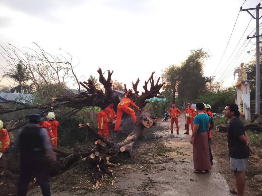 အဆိုပါ လေပြင်းတိုက်ခတ်ရာနေရာသို့ မြို့နယ်စီမံခန့်ခွဲရေးနှင့် အုပ်ချုပ်ရေးကော်မတီ ဥက္ကဋ္ဌနှင့် အဖွဲ့ဝင်များ၊ မြို့နယ်မီးသတ်ဦးစီးဌာန ဝန်ထမ်းများ၊ မြို့နယ်စည်ပင်သာယာရေး အဖွဲ့ဝန်ထမ်းများ၊ လျှပ်စစ်ဓာတ်အားဖြန့်ဖြူးရေးလုပ်ငန်းမှ ဝန်ထမ်းများနှင့် သက်ဆိုင်ရာ ရပ်ကွက်အုပ်ချုပ်ရေးမှူးများသွားရောက်ခဲ့ပြီး လိုအပ်သည်များကို ပေါင်းစပ်ကူညီ ဆောင်ရွက်ပေးလျက်ရှိကြောင်း သိရသည်။
