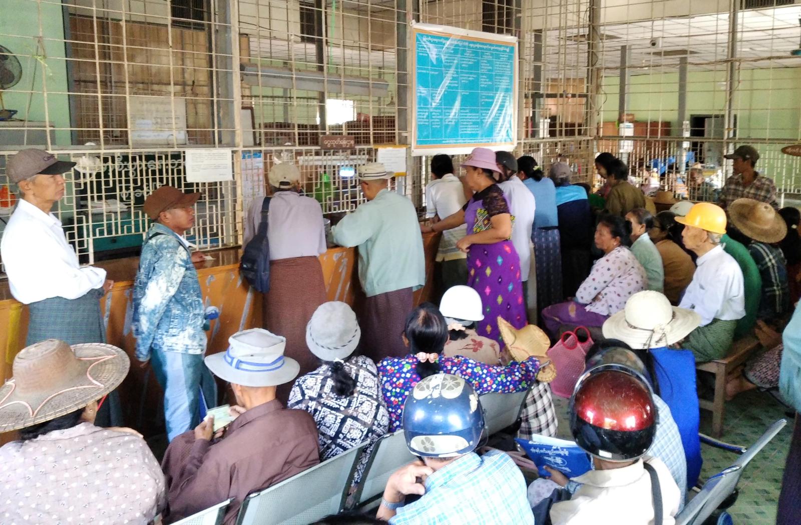 ဧရာဝတီတိုင်းဒေသကြီး၊ မြန်အောင်ခရိုင်၊ ကြံခင်းမြို့နယ် မြန်မာ့စီးပွားရေးဘဏ်၌ အငြိမ်းစားပင်စင်စား ၁၁၈၇ ဦးအား ယနေ့နံနက် ၆ နာရီမှစတင်၍ ပင်စင်လစာငွေများ ထုတ်ပေးလျက်ရှိသည်။