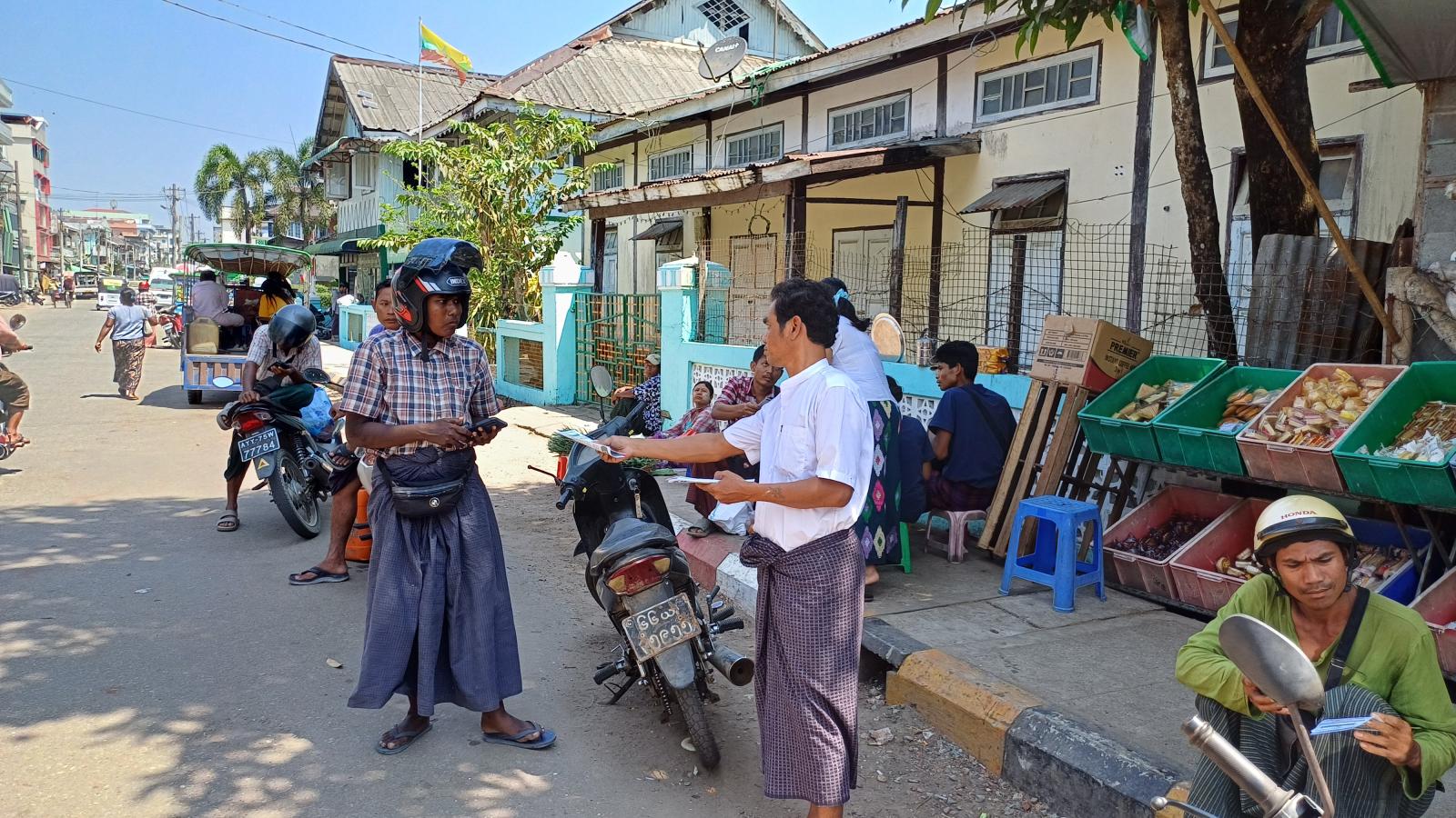 ဧရာဝတီတိုင်းဒေသကြီး၊ ဖျာပုံခရိုင်၊ဖျာပုံမြို့နယ်တွင် ခရိုင်ပြန်ကြားရေးနှင့် ပြည်သူ့ဆက်ဆံရေးဦးစီးဌာန ဝန်ထမ်းများသည် မြို့နယ်အတွင်းရှိ ဈေးများ၊ လူစည်ကားရာနေရာများ၊ လူနေရပ်ကွက်များသို့သွားရောက်၍ (၈၁) နှစ်မြောက် တပ်မတော်နေ့အထိမ်းအမှတ် သတင်းစကားလက်ကမ်းစာစောင်များဖြန့်ဝေခြင်းကို ယနေ့နံနက် (၉) နာရီခွဲ အချိန်ကမြို့နယ်အတွင်း လိုက်လံဖြန့်ဝေခဲ့ကြသည်။