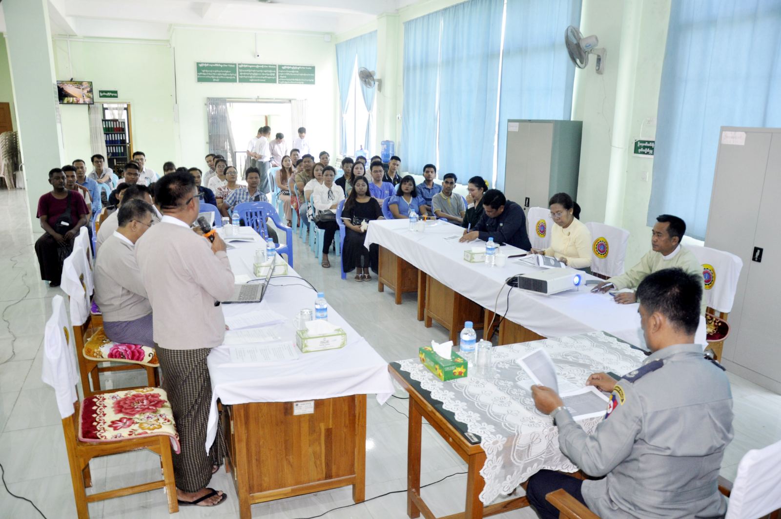 ထို့နောက် လှိုင်သာယာ (အနောက်ပိုင်း) မြို့နယ် အခွန်ဦးစီးအရာရှိ ဦးရဲထွန်းက ဗဟိုမိုဘိုင်းစက်ပစ္စည်း သက်သေခံမှတ်ပုံတင်စနစ် (CEIR) စနစ်ဆိုင်ရာနှင့် ပတ်သက်သည့် အကြောင်းအရာများကို ပြည်သူများအား (Power Point) ဖြင့် အသိပညာပေး ရှင်းလင်းပြောကြားသည်။