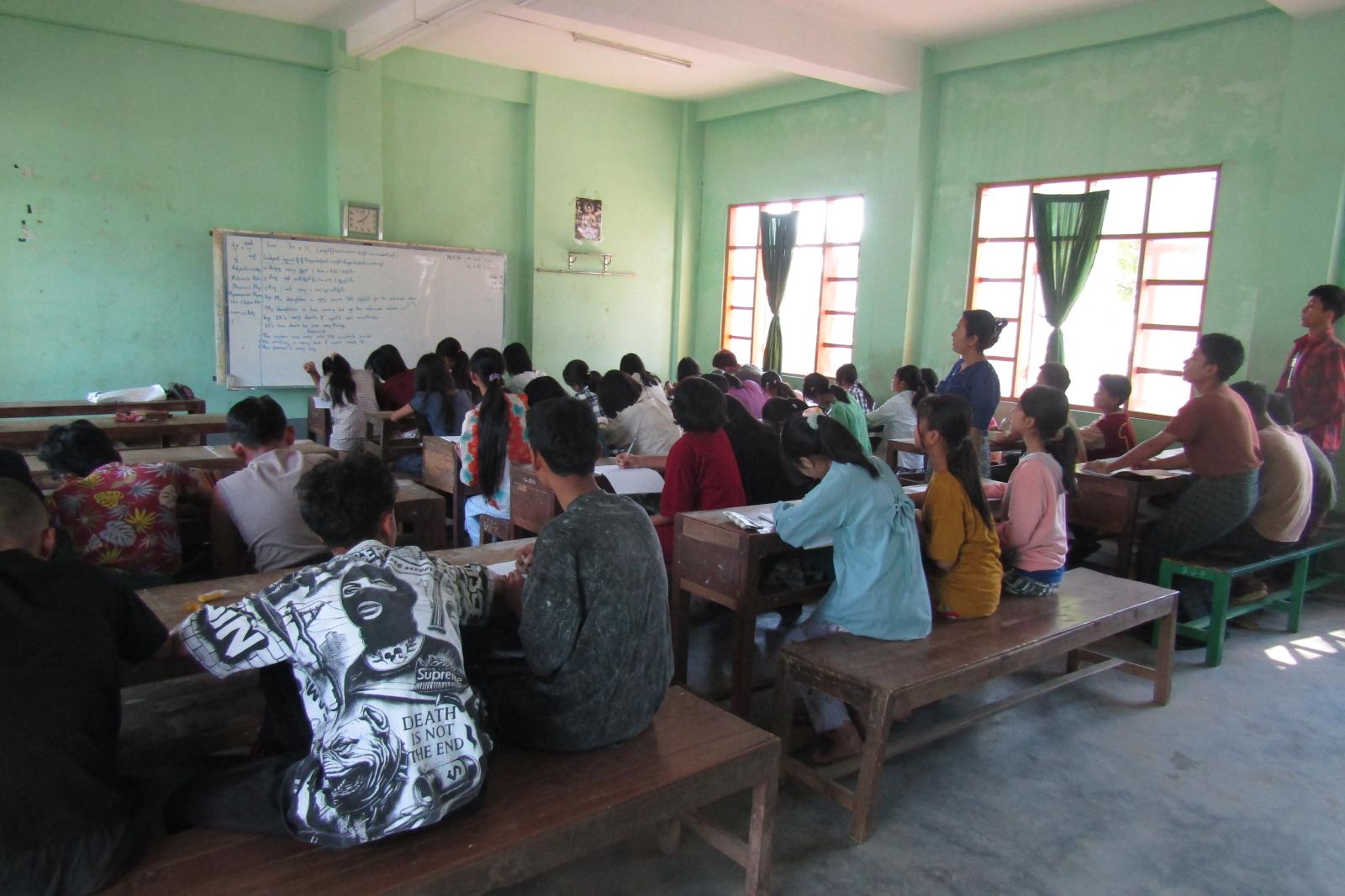 နွေရာသီ English Grammer သင်တန်းကို ဆရာ၊ ဆရာမ (၄) ဦးမှ ပညာဒါနအဖြစ် အခမဲ့ သင်ကြားပေးသွားမည်ဖြစ်ပြီး ကျောင်းသား၊ ကျောင်းသူ(၅၄)ဦး တက်ရောက်လျက်ရှိကြောင်း သိရသည်။