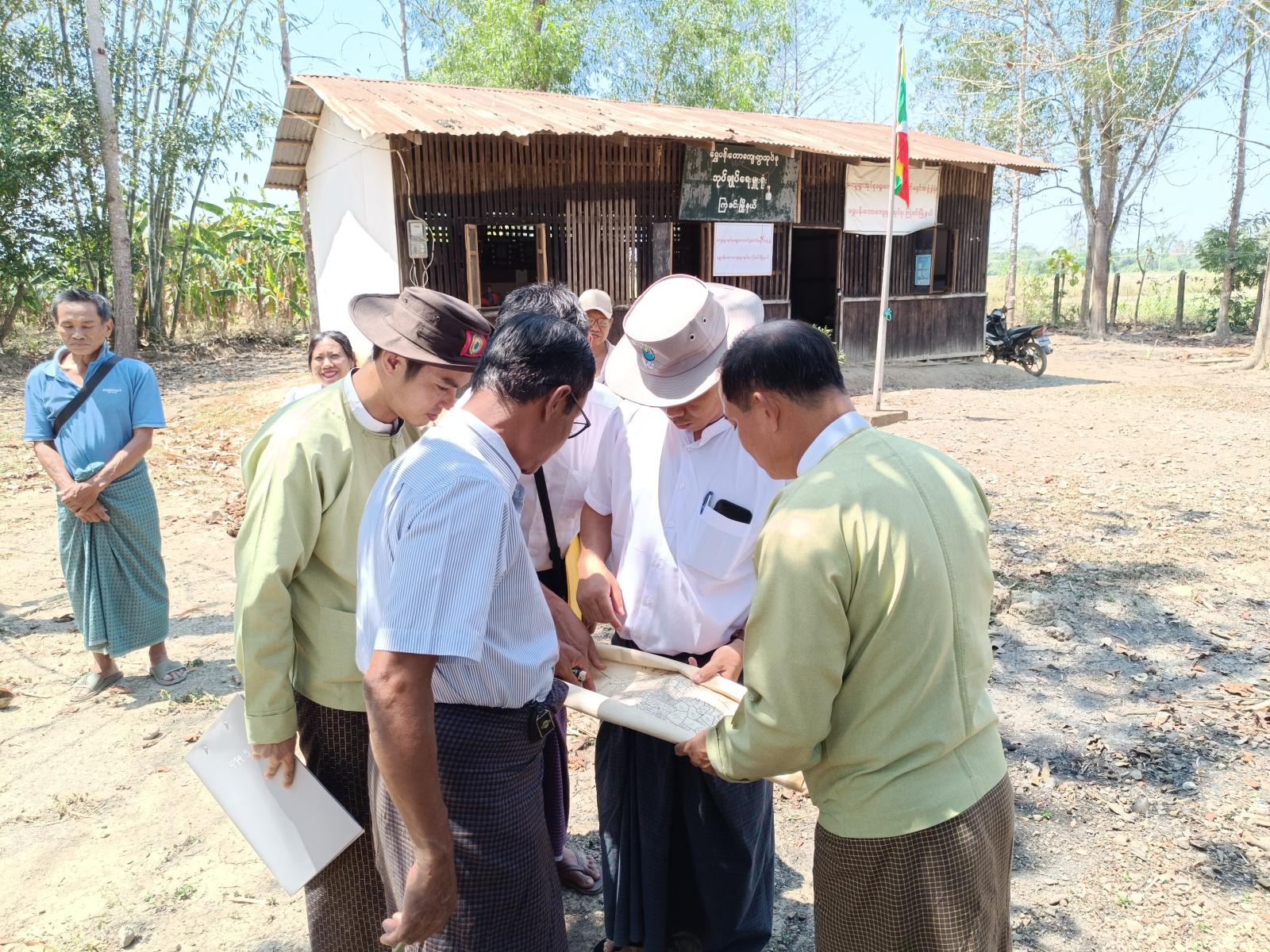 ဧရာဝတီတိုင်းဒေသကြီး၊ မြန်အောင်ခရိုင်၊ ကြံခင်းမြို့နယ်၊ ရွှေပန်းတောအုပ်စု၊ ဝဲကြီးကျေးရွာ၌ ကျေးရွာစာကြည့်တိုက်ဆောက်လုပ်မည့် မြေနေရာအား ယနေ့ မွန်းလွဲပိုင်းက ခရိုင်စီမံခန့်ခွဲရေးနှင့်အုပ်ချုပ်ရေးကော်မတီအဖွဲ့ဝင်များ၊ မြို့နယ်အထွေထွေအုပ်ချုပ်ရေးဦးစီးဌာနမှ ဒုတိယမြို့နယ်အုပ်ချုပ်ရေးမှူးနှင့် တာဝန်ရှိသူများက ကွင်းဆင်းကြည့်ရှုကြသည်။