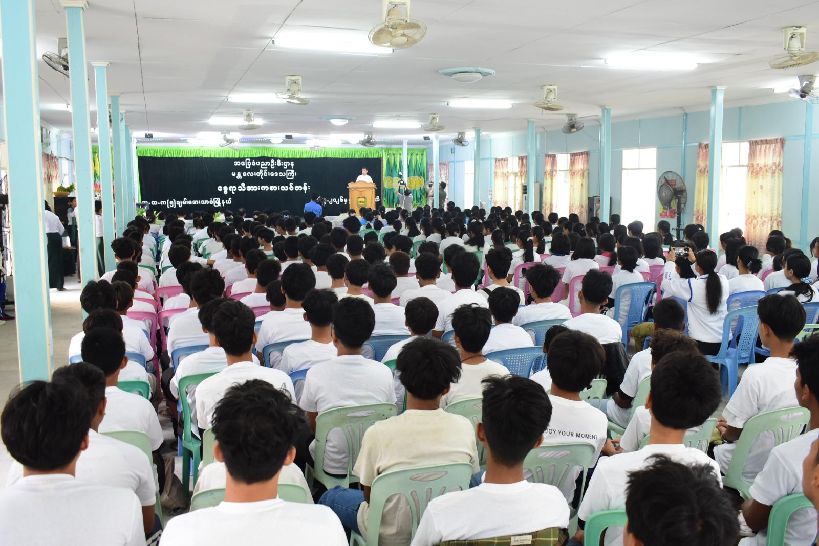 မန္တလေးတိုင်းဒေသကြီး ပညာရေးမှူးရူံးနှင့် အားကစားနှင့်ကာယပညာဦးစီးဌာနတို့ ပူးပေါင်းကျင်းပသော နွေရာသီအားကစားသင်တန်းဖွင့်ပွဲ အခမ်းအနားကို ချမ်းအေးသာစံမြို့နယ်၊ အမှတ်(၅)အခြေခံပညာအထက်တန်းကျောင်းရှိ ပညာမြင့်မိုရ်ခန်းမဆောင်၌ ယနေ့နံနက်ပိုင်းက ကျင်းပခဲ့သည်။