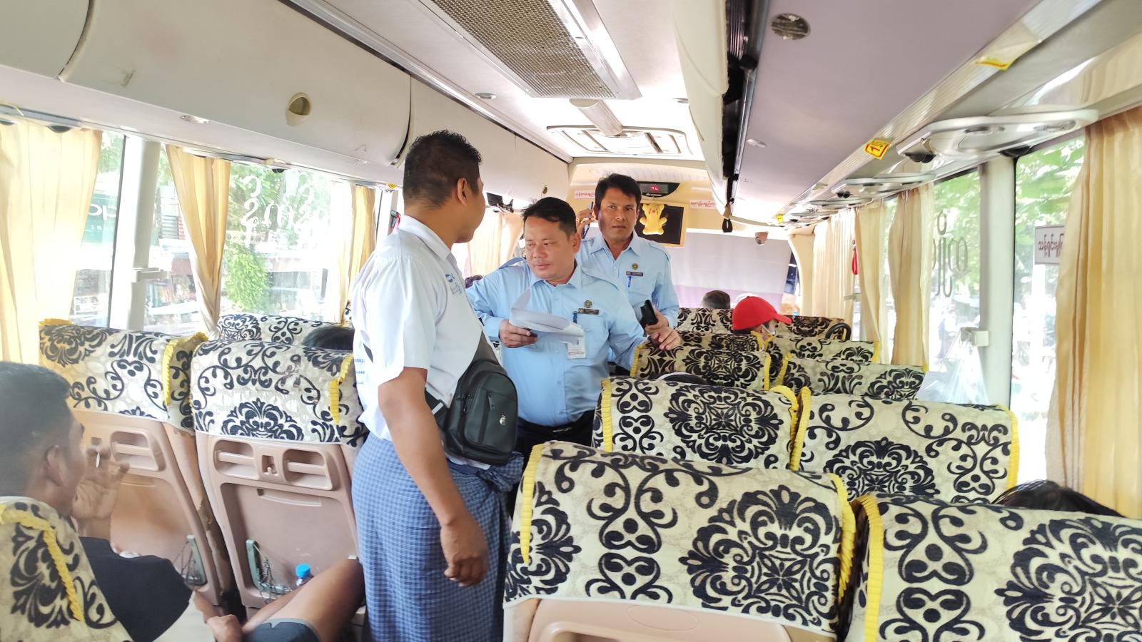 ထိုသို့ကွင်းဆင်းစစ်ဆေးရာတွင် ကားလက်မှတ်ကို သတ်မှတ်ဈေးနှုန်းဖြင့် ရောင်းချခြင်းရှိ/မရှိ၊ ပစ္စည်းများကို တန်ဆာခရယူသယ်ဆောင်ရာတွင် ပေးပို့သူ စိတ်ချလုံခြုံမှုရရှိနိုင်မှုရှိ/မရှိ စစ်ဆေးခြင်း၊ ကုန်ပစ္စည်းများကို သတ်မှတ်ရက်အတွင်း ပို့ဆောင်မှုရှိ/မရှိစစ်ဆေးခြင်း၊ ယာဉ်အတွင်း မကောင်းသောအနံများမရှိစေရန်၊ ကွမ်းတံထွေး၊ အမှိုက်ကဲ့သို့သော ပစ္စည်းများမရှိစေရန် သန့်ရှင်းမှုရှိ/မရှိစစ်ဆေးခြင်းနှင့် အများပြည်သူသုံး သယ်ယူပို့ဆောင်ရေး ယာဉ်လိုင်းများအနေဖြင့် အသုံးပြုသူ စိတ်ကျေနပ်မှုရှိစေရန် ဆောင်ရွက်ပေးနိုင်ခြင်းရှိ/မရှိ စစ်ဆေးခြင်းများ ဆောင်ရွက်ခဲ့ကြောင်း သိရသည်။
