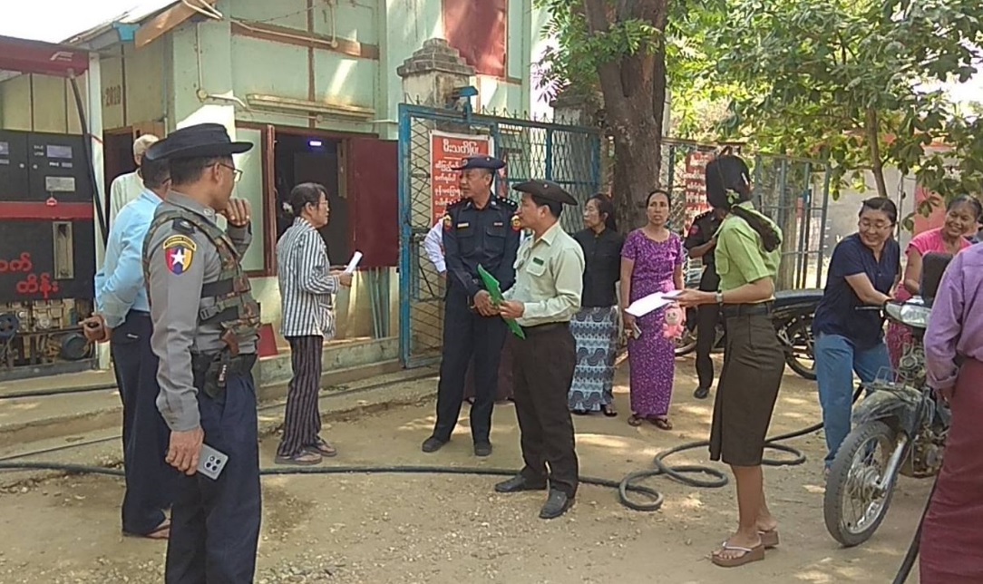 အဆိုပါလုပ်ငန်းကို မြို့နယ်စီမံခန့်ခွဲရေးနှင့်အုပ်ချုပ်ရေးကော်မတီအဖွဲ့၏ လမ်းညွှန်ကြီးကြပ်မှုဖြင့် သက်ဆိုင်ရာဌာနကော်မတီတာဝန်ရှိသူများ ပူးပေါင်း၍ စက်သုံးဆီပြတ်လပ်မှုမဖြစ်ပေါ်စေရန် စက်သုံးဆီများတရာမဝင်ရောင်းချမှုမရှိရေး၊ စက်သုံးဆီအရောင်းဆိုင်များတွင် စက်သုံးဆီမျိုးအစားအလိုက် လက်ကျန်ဆီအပေါ်မူတည်၍ ယာဉ်များအားလုံးသတ်မှတ် ဈေးများအတိုင်းရောင်းချပြီး ဈေးနှုန်းမြှင့်တင်ရောင်းချခြင်းမရှိရေး၊ သတ်မှတ်ရက်အလိုက် သတ်မှတ်ယာဉ်များအား စက်သုံးဆီရောင်းချပေးရေးနှင့် အကြိမ်ကြိမ်တန်းစီ၍ တဆင့်ပြန်လည်ရောင်းချခြင်း၊ တရားမဝင်သိုလှောင်ခြင်း ရောင်းချခြင်းမရှိစေရေး တို့ကိုကွင်းဆင်း စစ်ဆေးဆောင်ရွက်ခဲ့ကြောင်း သိရသည်။