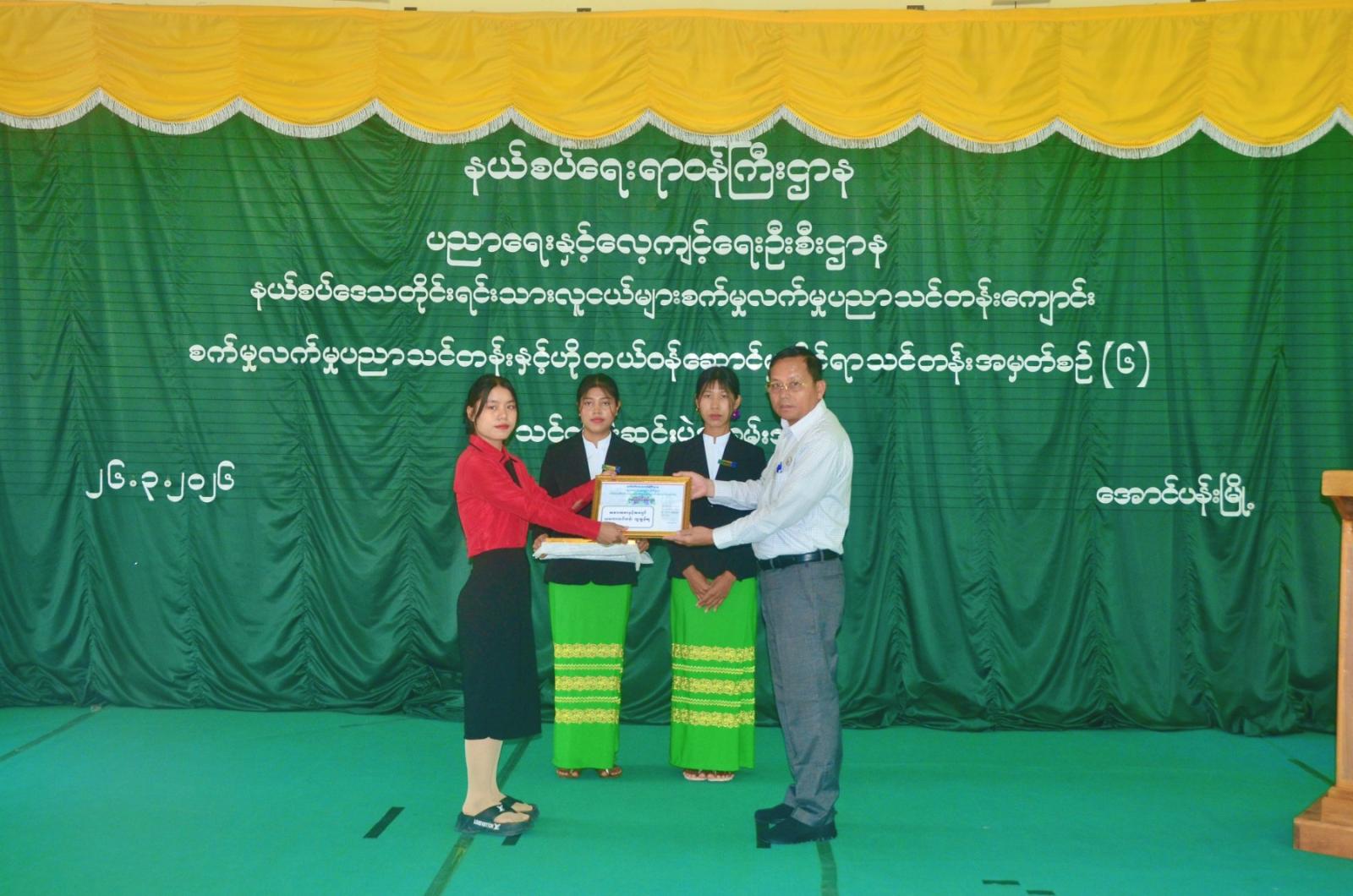 ရှေးဦးစွာ ရှမ်းပြည်နယ်အစိုးရအဖွဲ့ ပြည်နယ်ဝန်ကြီးချုပ် ဦးအောင်အောင်က သင်တန်းဆင်းအမှာစကား ပြောကြားခဲ့ပြီး စက်မှုလက်မှုပညာသင်တန်းနှင့် ဟိုတယ်ဝန်ဆောင်မှုဆိုင်ရာသင်တန်းတွင် ထူးချွန်းဆုရ သင်တန်းသား၊ သင်တန်းသူများအား ဂုဏ်ပြုမှတ်တမ်းလွှာများနှင့် သင်တန်းဆင်းအောင်လက်မှတ်များကို ရှမ်းပြည်နယ်အစိုးရအဖွဲ့ ပြည်နယ်ဝန်ကြီးချုပ်၊ ပြည်နယ်ဥပဒေချုပ်နှင့် ပြည်နယ်လမ်းပန်းဆက်သွယ်ရေးရာဝန်ကြီးတို့က ပေးအပ်ချီးမြှင့်ပေးခဲ့သည်။ ထို့နောက် သင်တန်းသား၊ သင်တန်းသူများကိုယ်စား သင်တန်းသူတစ်ဦးက ကျေးဇူးတင်စကားပြောကြားခဲ့ပြီး ရှမ်းပြည်ဝန်ကြီးချုပ်နှင့် အဖွဲ့ဝင်များက သင်တန်းသား၊ သင်တန်းသူများဖြင့် အမှတ်တရ စုပေါင်းမှတ်တမ်းတင်ဓာတ်ပုံ ရိုက်ကူးခဲ့ကြသည်။