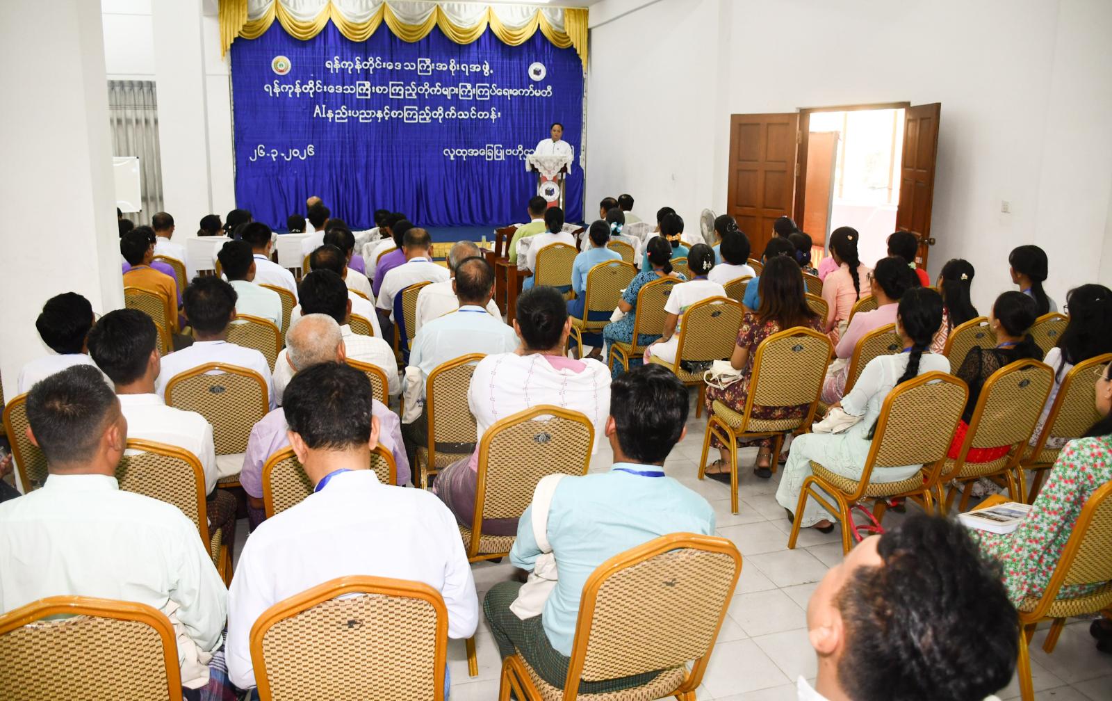 ရန်ကုန်တိုင်းဒေသကြီးအစိုးရအဖွဲ့၊ ရန်ကုန်တိုင်းဒေသကြီး စာကြည့်တိုက်များကြီးကြပ်ရေးကော်မတီတို့ပူးပေါင်းကျင်းပသည့် AI နည်းပညာနှင့် စာကြည့်တိုက်သင်တန်းဆင်းပွဲ အခမ်းအနားကို ယနေ့နံနက်ပိုင်းအချိန်က ရန်ကုန်မြို့ ဗဟန်းမြို့နယ်ရှိ လူထုအခြေပြုဗဟိုဌာန(ဗဟန်း)၌ ကျင်းပပြုလုပ်သည်။