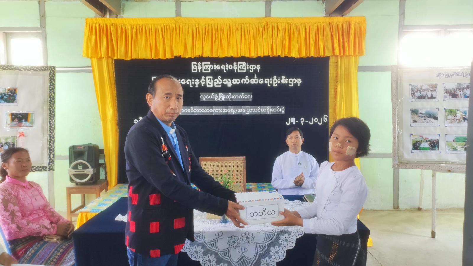 ဆက်လက်၍ မြန်မာ့အသံနှင့်ရုပ်မြင်သံကြား ထပ်ဆင့်လွှင့်စက်ရုံတာဝန်ခံ ဦးသန့်စင်နှင့် ခန္တီးခရိုင် ပြန်ကြားရေးနှင့်ပြည်သူ့ဆက်ဆံရေးဦးစီးဌာနမှ ဝာာဝန်ရှိသူများက စာဖတ်စွမ်းရည်ပြိုင်ပွဲ၊ ဉာဏ်စမ်းပဟေဠိပြိုင်ပွဲ၊ ကျပန်းစကားပြောပြိုင်ပွဲ၊ သင်္ချာစွမ်းရည်ပြိုင်ပွဲတို့တွင် ဆုရရှိသည့် ကျောင်းသား / ကျောင်းသူများအား စာအုပ်နှင့်ဘောပင်ဆုများ ချီးမြှင့်ခဲ့သည်။