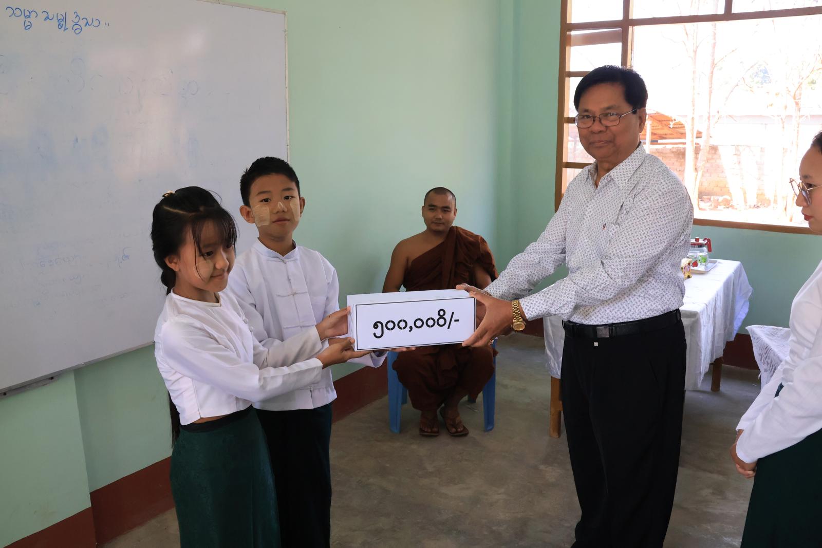 ထို့နောက် ပြည်နယ်ဝန်ကြီးချုပ်က သင်တန်းနည်းပြများနှင့် သင်တန်းသား၊ သင်တန်းသူများကို ချီးမြှင့်ငွေများ ပေးအပ်ရာ သင်တန်းသား ကိုယ်စားလှယ် ၂ ဦးက လက်ခံရယူကြသည်။