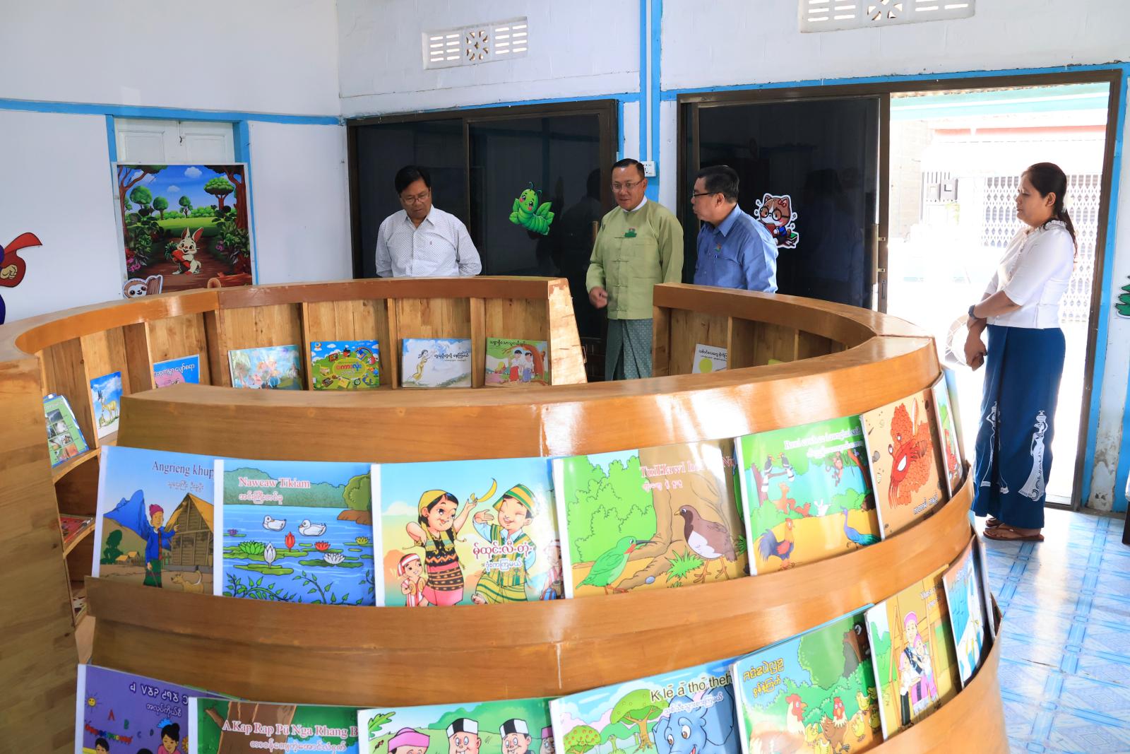 ယင်းနောက် ပြည်နယ်ဝန်ကြီးချုပ်နှင့် အစိုးရအဖွဲ့ဝင်များသည် ပြန်ကြားရေးနှင့်ပြည်သူ့ ဆက်ဆံရေးဦးစီးဌာန လွိုင်ကော်ခရိုင်ရုံးသို့ရောက်ရှိပြီး ပြည်သူ့စာကြည့်တိုက် ဖွင့်လှစ် ဆောင်ရွက်လျက်ရှိသည့် အခြေအနေများကို ကြည့်ရှုစစ်ဆေးကာ စာအုပ်စာစောင်များ ပျက်စီးဆုံးရှုံးမှု မရှိစေရေး၊ စာဖတ်စာငှားဦးရေ တိုးပွားလာစေရေး ဆောင်ရွက်သွားရန်၊ လူငယ်များ စာကြည့်တိုက်သို့လာရောက်မှု များပြားစေရေးအတွက် လူငယ်များနှင့် သက်ဆိုင်သည့် သင်တန်းများ စဉ်ဆက်မပြတ် ဖွင့်လှစ်သင်ကြားသွားနိုင်ရန် မှာကြားခဲ့ပြီး ဖွင့်လှစ်သင်ကြားလျက်ရှိသည့် ပန်းချီသင်တန်းကို ကြည့်ရှုအားပေးသည်။ ထို့နောက် ပြည်နယ် ဝန်ကြီးချုပ်က သင်တန်းနည်းပြများနှင့် သင်တန်းသား၊ သင်တန်းသူများကို ချီးမြှင့်ငွေများ ပေးအပ်ရာ သင်တန်းသူ ကိုယ်စားလှယ် ၂ ဦးက လက်ခံရယူကြပြီး ပြည်နယ်ဝန်ကြီးချုပ်နှင့် တာဝန်ရှိသူများသည် ခရိုင်ရုံးအတွင်း ဖွင့်လှစ်ဆောင်ရွက်လျက်ရှိသည့် ကလေးစာဖတ်ခန်းကို လှည့်လည်ကြည့်ရှုခဲ့ကြကြောင်း သိရသည်။