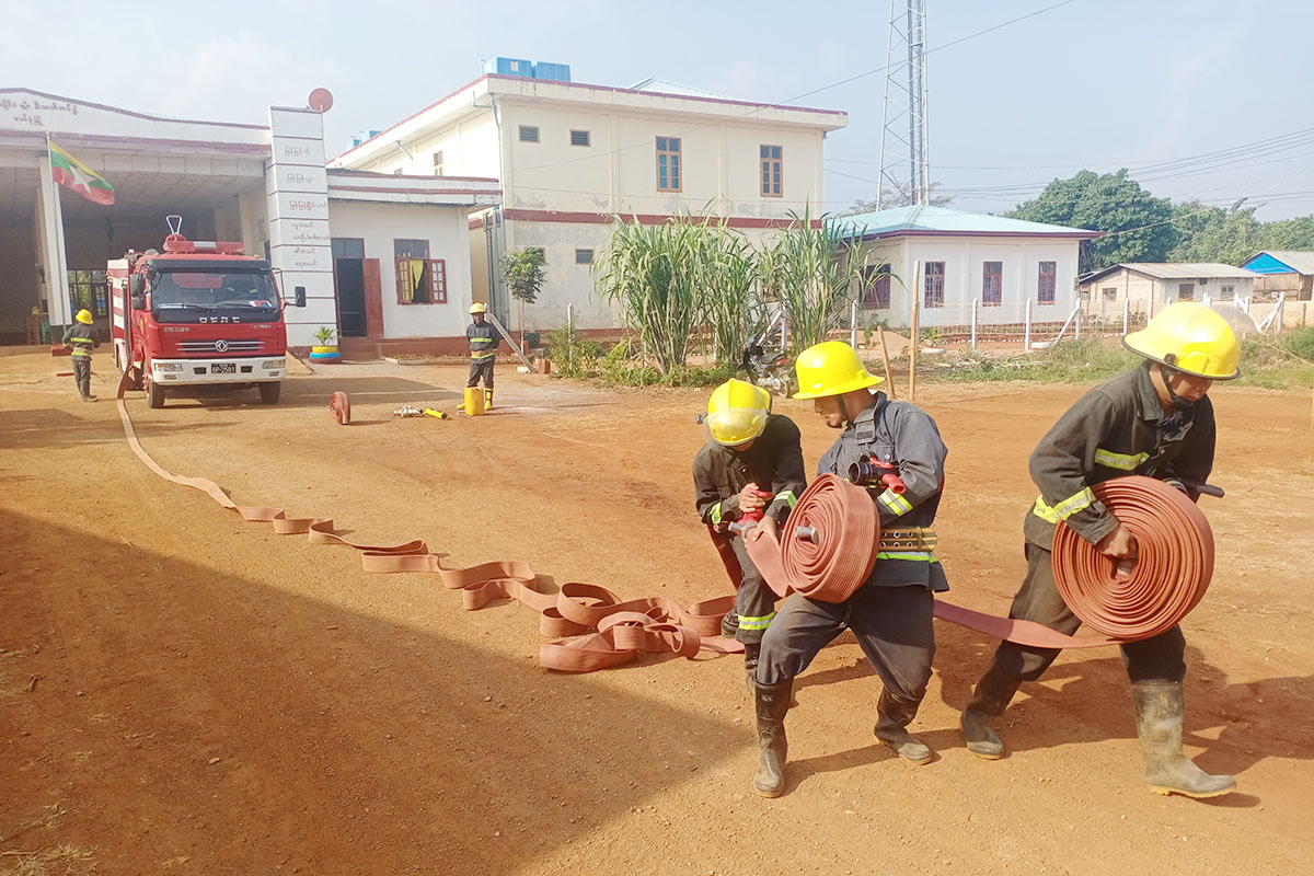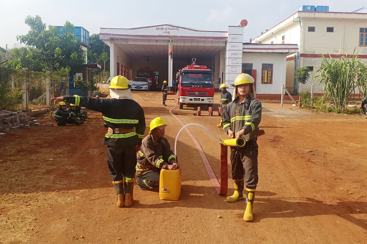 ရှမ်းပြည်နယ်(တောင်ပိုင်း)၊ ဖယ်ခုံမြို့နယ် မီးသတ်ဦးစီးဌာန၌ အပတ်စဉ် နေ့စဉ်သက်ဆိုင်ရာ သင်ခန်းစာများကို အလှည့်ကျ လေ့ကျင့်ဆောင်ရွက်လျက်ရှိရာ ယနေ့ နံနက် ၉ နာရီအချိန်ခန့်က မြို့နယ်မီးသတ် တပ်ဖွဲ့၀င်များသည် မီးသတ်စက်ကြီး လေ့ကျင့်ခန်းများ ဆောင်ရွက်လျက် ရှိကြောင်း သိရှိရသည်။