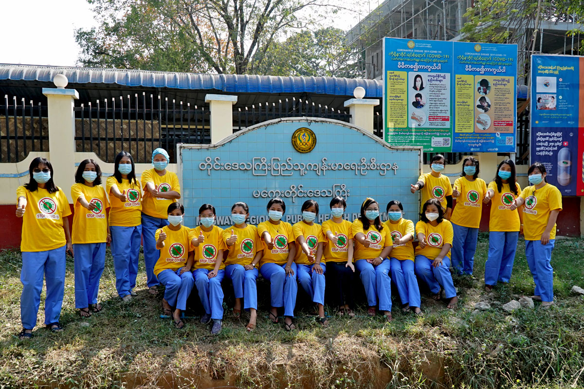 မကွေးတိုင်းဒေသကြီးကျန်းမာရေးဦးစီးဌာန၏ Stop COVID အဝါရောင် အသိပညာပေး လှုပ်ရှား မှု တစ်ရပ်ကို တိုင်းဒေသကြီးပြည်သူ့ကျန်းမာရေးနှင့်ကုသရေးဦးစီးဌာနမှူး ဒုတိယညွှန်ကြား ရေးမှူးချုပ် ဒေါက်တာသောင်းလှိုင် ဦးဆောင်မှုဖြင့် ကျန်းမာရေးဝန်ထမ်းများက ဇန်နဝါရီလ ၁၄ ရက်နေ့ မွန်းလွဲပိုင်း က တိုင်းဒေသကြီးကျန်းမာရေးဦးစီးဌာနရုံးရှေ့၌ ဆောင်ရွက်ခဲ့ကြသည်။