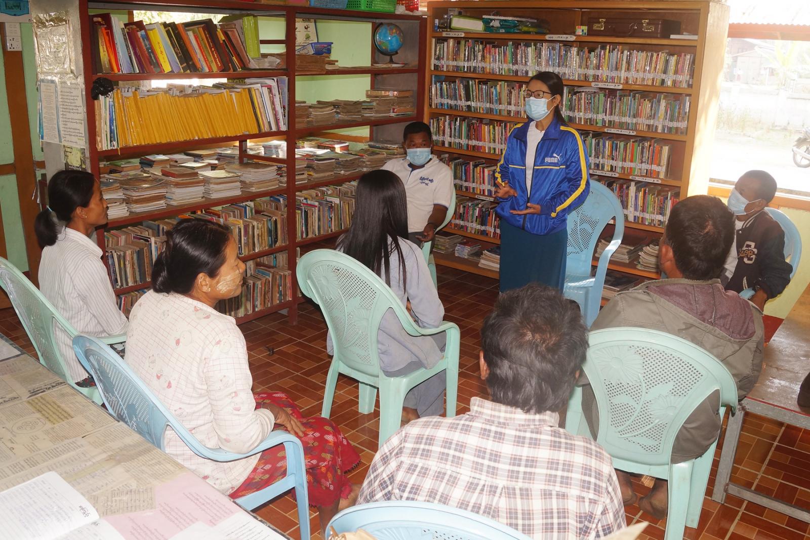 ထို့သို့ကွင်းဆင်းဆောင်ရွက်ရာတွင် ပြန်ကြားရေးနှင့်ပြည်သူ့ဆက်ဆံရေးဦးစီးဌာနမှ မြို့နယ် ဦးစီးမှူး ဒေါ်တင့်တင့်ခိုင် က “သုတပဒေသာ” စာကြည့်တိုက်ကော်မတီဝင်များအား တွေ့ဆုံ၍ စာကြည့်တိုက်ရေရှည်တည်တံ့ ဖွံ့ဖြိုးတိုးတက်ရန်အတွက် စာကြည့်တိုက်ကော်မတီဝင်များအနေ ဖြင့် မိမိတို့ကျေးရွာအတွင်းရှိ ပြည်သူများအား စာပေဗဟုသုတိုးပွားရရှိစေရေး၊ စာအုပ်စာစောင် လေ့လာဖတ်ရှုရန်နှင့် စာဖတ်သူပိုမိုများပြားလာအောင် ဆောင်ရွက်ရန်၊ စာအုပ်စာစောင်များကို မပျောက်မပျက်စေရန်၊ စာကြည့်တိုက်အဆောက်အဦ ရေရှည်တည်တံ့ခိုင်မြဲအောင် ထိန်းသိမ်းရန် လိုအပ်ကြောင်း ရှင်းလင်းပြောကြားခဲ့သည်။ ထို့နောက် စာကြည့်တိုက်ကော်မတီဝင်များက သိရှိလိုသည်များ မေးမြန်းရာ မြို့နယ်ဦးစီးမှူးက ပြန်လည်ဖြေကြားပေးခဲ့သည်။
