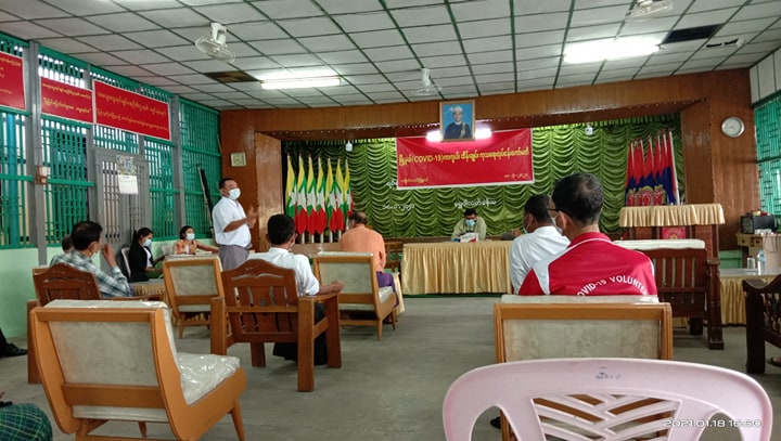 ဧရာဝတီတိုင်းဒေသကြီး ၊ ဖျာပုံခရိုင် ၊ ကျိုက်လတ်မြို့နယ် ၊ အထွေထွေအုပ်ချုပ်ရေးဦးစီးဌာန ၊ ရွှေဝါလတ်ခန်းမတွင် ၊ ယမန်နေ့ ညနေ(၄)နာရီခန့်က မြို့နယ်ကိုဗစ်-၁၉ ကာကွယ်ထိန်းချုပ်ကုသရေး လုပ်ငန်းကော်မတီ ညှိနှိုင်းအစည်းအဝေးကျင်းပခဲ့သည်။
