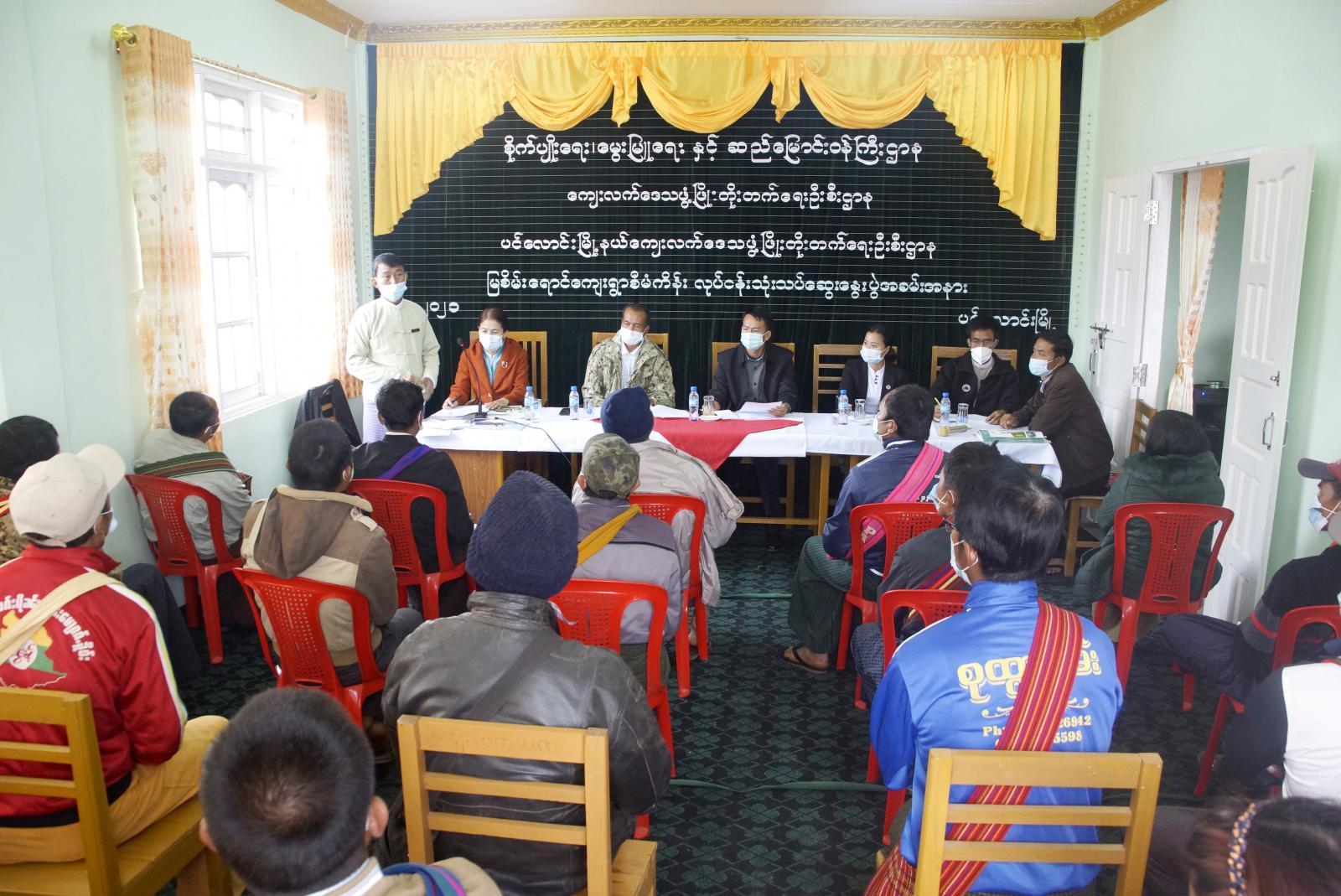 စိုက်ပျိုးရေး၊ မွေးမြူရေးနှင့်ဆည်မြောင်းဝန်ကြီးဌာန၊ မြို့နယ်ကျေးလက်ဒေသဖွံ့ဖြိုးတိုးတက်ရေးဦးစီးဌာနမှ ၂၀၁၉-၂၀၂၀ခု ဘဏ္ဍာရေးနှစ်အထိ ကျေးရွာဖွံ့ဖြိုးရေးလုပ်ငန်းများ အကောင်အထည်ဖော် ဆောင်ရွက်ခဲ့သည့် မြစိမ်းရောင်ကျေးရွာစီမံကိန်း လုပ်ငန်းသုံးသပ်ဆွေးနွေးပွဲ အခမ်းအနားကို ရှမ်းပြည်နယ်တောင်ပိုင်း ပအိုဝ်းကိုယ်ပိုင်အုပ်ချုပ်ခွင့်ရဒေသ ပင်လောင်းမြို့နယ် ကျေးလက်ဒေသဖွံ့ဖြိုးတိုးတက်ရေးဦးစီးဌာန အစည်းအဝေးခန်းမ၌ ယနေ့နံနက်ပိုင်း က ပြုလုပ်သည်။