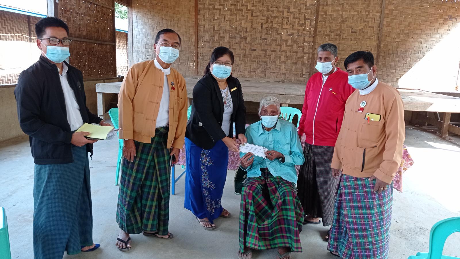 ထိုသို့ထောက်ပံ့ပေးအပ်ရာတွင် လူမှုဝန်ထမ်း၊ ကယ်ဆယ်ရေးနှင့် ပြန်လည်နေရာချထားရေး ဝန်ကြီးဌာန၊ လူမှုဝန်ထမ်း ဦးစီးဌာန၏ ၂၀၂၀-၂၀၂၁ခု၊ ဘဏ္ဍာရေးနှစ် ပထမသုံးလပတ် လူမှုရေးပင်စင် ထောက်ပံ့ကြေး ပေးအပ်ရာ၌ အသက် (၁၀၀)နှစ် နှင့်အထက် သက်ကြီးရွယ်အိုများအား တစ်ဦးလျှင် လူမှုရေးပင်စင် ထောက်ပံ့ကြေးငွေကျပ် (၃၀၀၀၀)နှင့် ကိုဗစ်-၁၉ ကူးစက်ရောဂါ ဒုတိယလှိုင်း(Second Wave) ကာလ အတွင်း အရေးပေါ်တုန့်ပြန် ဆောင်ရွက်မှုအနေဖြင့် ထပ်ဆောင်း ထောက်ပံ့ငွေ (၃ဝဝဝဝ)ကျပ် စုစုပေါင်း ထောက်ပံ့ငွေ (၆၀၀၀၀)ကျပ်တို့ကို အမျိုးသား လွှတ်တော် ကိုယ်စားလှယ် ဦးသိန်းလွင်၊ ခရိုင်လူမှုဝန်ထမ်း ဦးစီးဌာနမှ ခရိုင်ဦးစီးမှူး ဒေါ်ဆွေဆွေဝင်းနှင့် ဝန်ထမ်းများတို့က ဗန်းမော်မြို့ပေါ်ရပ်ကွက်ရှိ အသက် (၁၀၀)နှစ်နှင့်အထက် သက်ကြီးရွယ်အို များအား နေအိမ်အရောက် အသီးသီး ထောက်ပံ့ ပေးအပ်ခဲ့သည်။