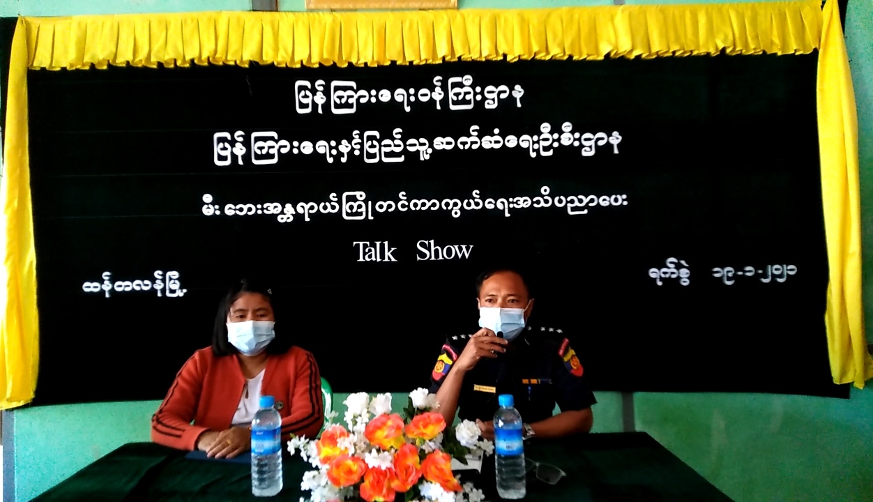 ရှေးဦးစွာ ပြန်ကြားရေးနှင့်ပြည်သူ့ဆက်ဆံရေးဦးစီးဌာန မြို့နယ်ဦးစီးမှူး ဒေါ်ကျင်ငိုက်မန်က မီးဘေးအန္တရာယ် ကြိုတင်ကာကွယ်ရေးအသိပညာပေး (Talk Show) ပြုလုပ်ရခြင်း၏ ရည်ရွယ်ချက်မှာ ကိုဗစ်-၁၉ ကာလတွင် မိမိတို့၏ နေအိမ်၌ (Stay Home) နေထိုင်သည့် ပြည်သူများအား မီးဘေးကြိုတင်ကာကွယ်ရေးနှင့်စပ်လျဥ်း၍ Online ဖြင့် အသိပညာဗဟုသုတ ရရှိစေရန်ရည်ရွယ်လျက်ေဆာင်ရွက်ရခြင်းဖြစ်ကြောင်းရှင်းလင်းပြောကြားသည်။