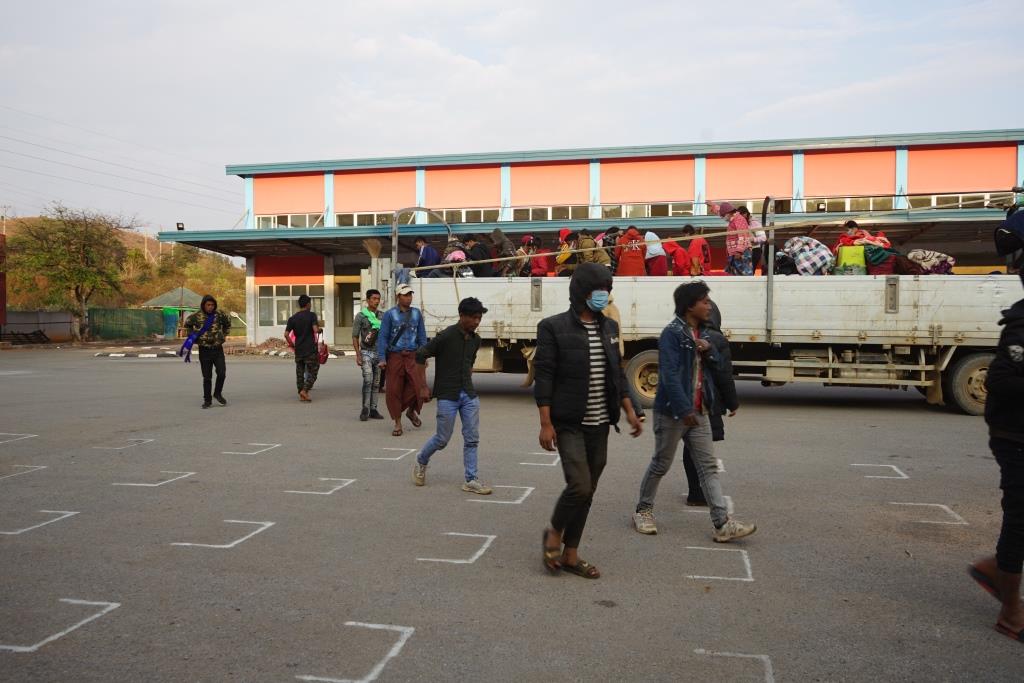 ယခုဝင်ရောက်လာသည့် နေရပ်ပြန်ရွှေ့ပြောင်း အလုပ်သမားများမှာ နေပြည်တော်၊ ရန်ကုန်တိုင်း၊ မန္တလေးတိုင်းဒေသကြီး၊ မကွေးတိုင်း၊ ပဲခူးတိုင်း၊ ကရင်ပြည်နယ်နှင့် ရှမ်းပြည်နယ် မြောက်ပိုင်းမှ နေရပ်ပြန်ရွှေ့ပြောင်း အလုပ်သမားများဖြစ်ပြီး ဝင်ရောက်လာသည့် နေရပ်ပြန် ပြည်သူများကို ဒေသ အသီးသီး အလိုက် မော်တော်ယာဉ် ၅ စီးဖြင့် စီစဉ်ဆောင်ရွက်ပေးခဲ့ကြကြောင်း သိရသည်။